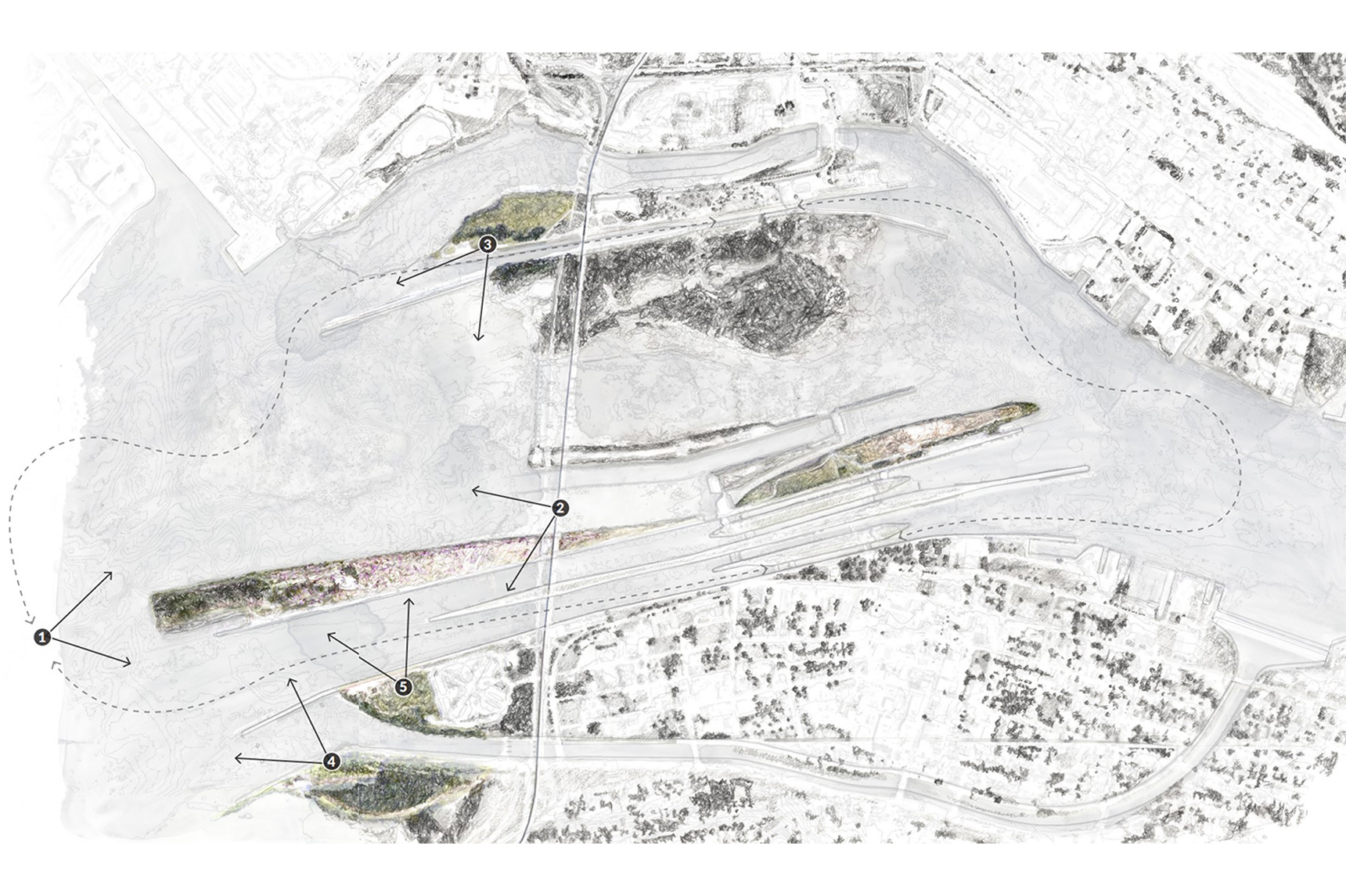 Jamie’s thesis work, “Liminal drift: revealing the human hand in shaping the untouched Great Lake,” questions the idealized portrayal of Lake Superior, claiming that such a simplified view hinders a genuine connection to the place. It proposes a different perspective by designing locations that highlight humanity’s influence on the landscape.