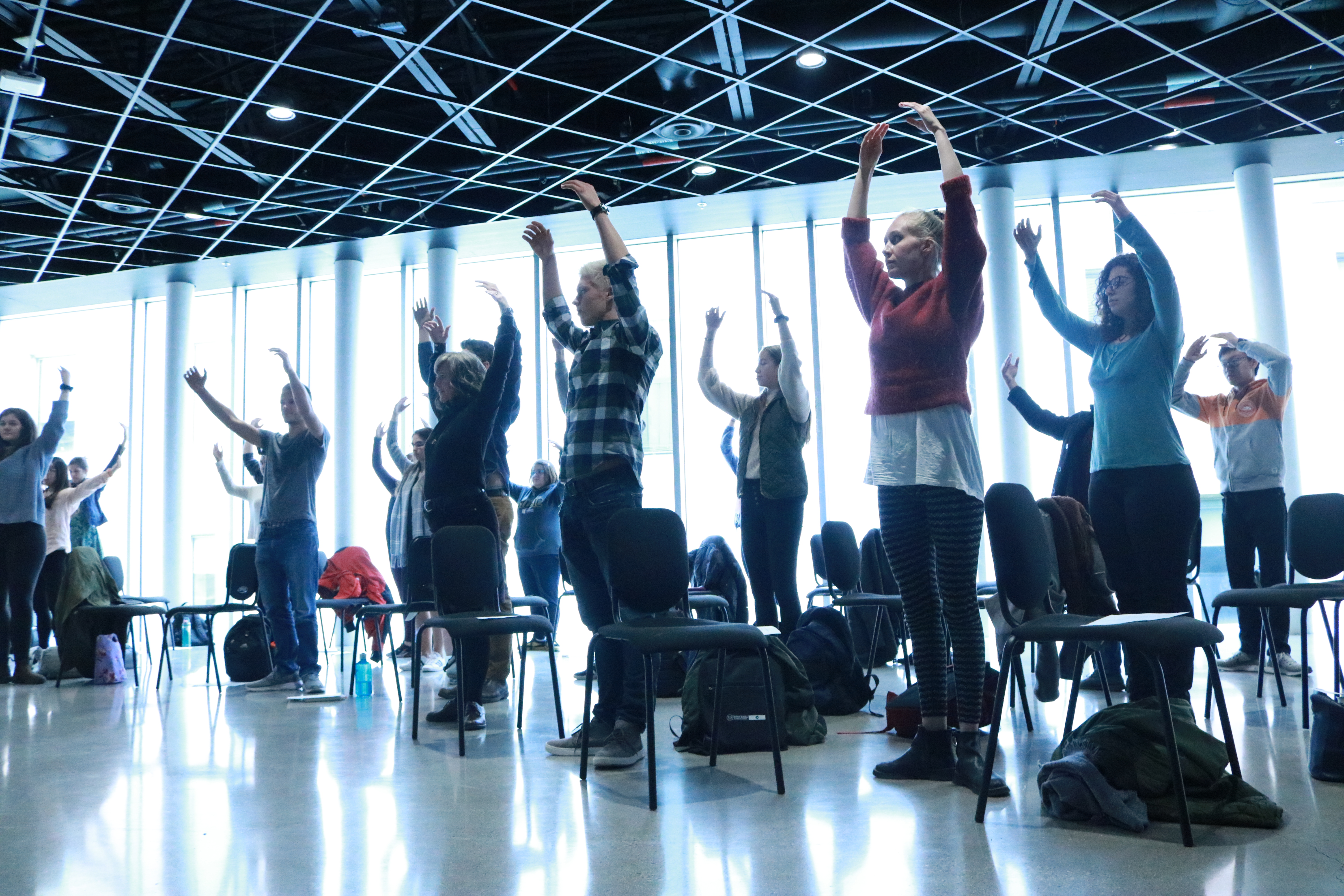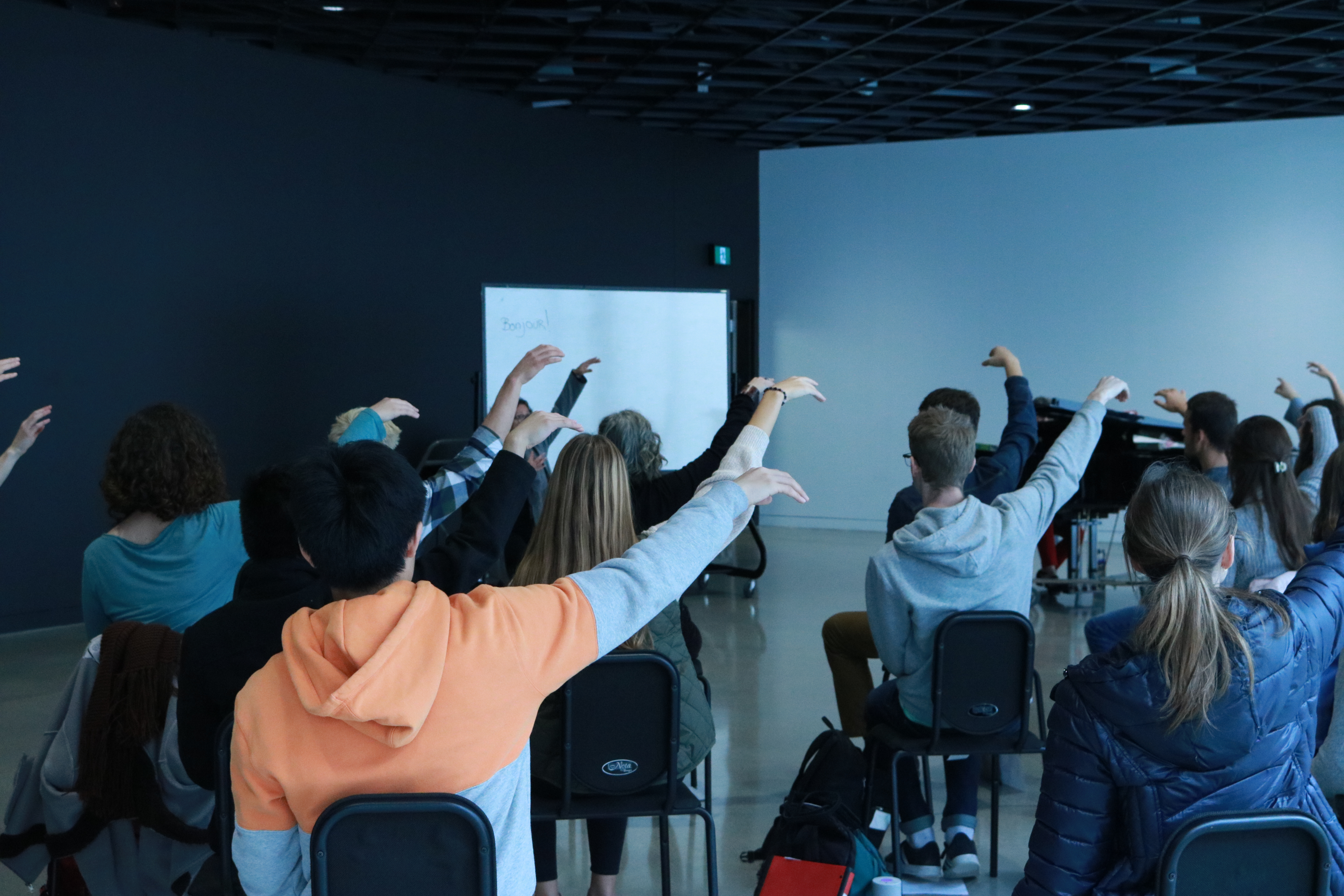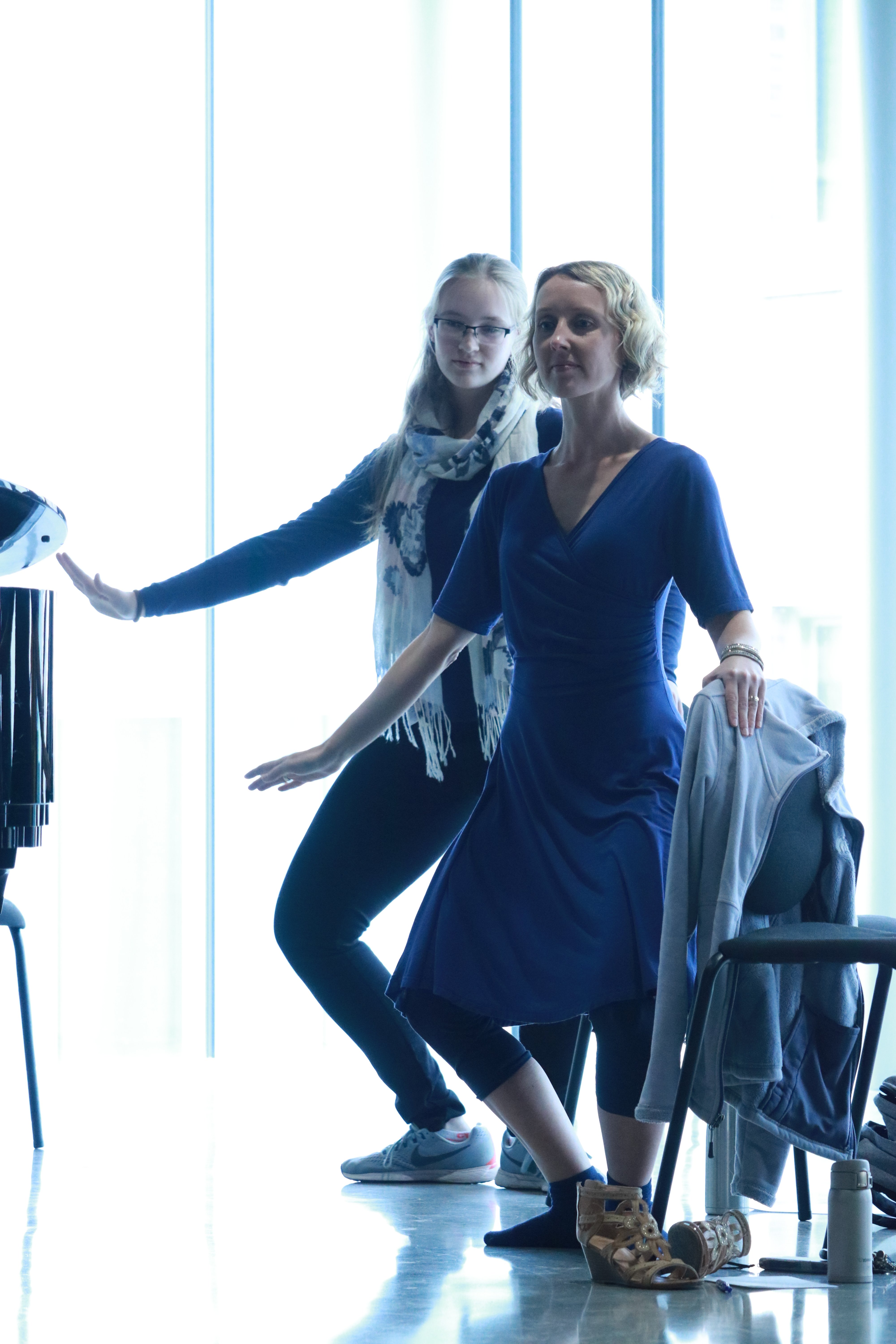 Students at the midday were guided through movement exercises that ballet dancers do, and then shown how altering the time signature, key, or phrasing of a piece of music can entirely change the way a ballet dancer moves. While being taught to do a plié (a bending of the knees that lowers a dancer gracefully towards the floor), some students also learned how loudly their knees can pop, or how much work they have to do regarding their flexibility!