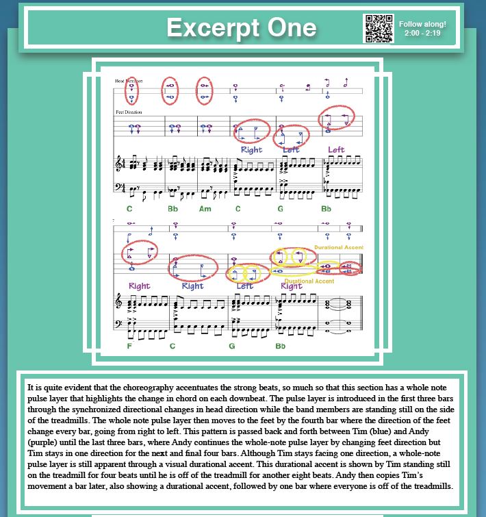 This observation helped her to come up with a visually simple way of comparing the music with the band’s choreography.