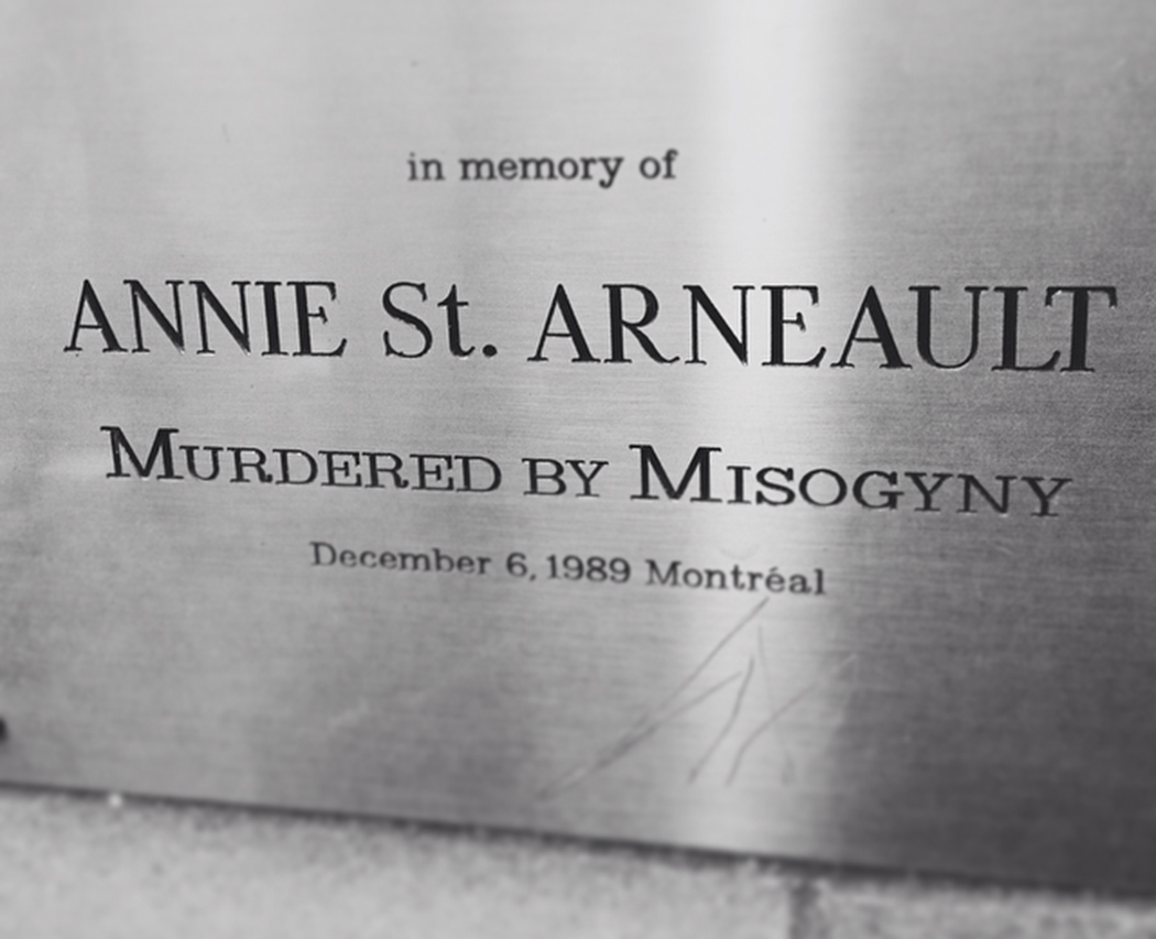 A commemorative plaque that hangs in the Faculty of Engineering. Annie St. Arneault was one of the victims.