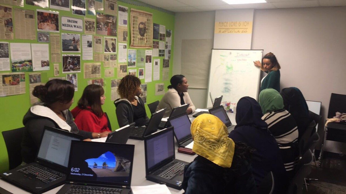Maryam Al-Azazi running "Power Up", a computer literacy class for females in IRCOM (Immigrant and Refugee Community Organization of Manitoba).