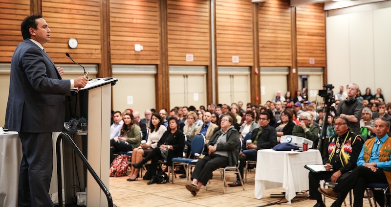 AFN National Chief Perry Bellegarde speaks to a full house at the U of M on Sept. 22