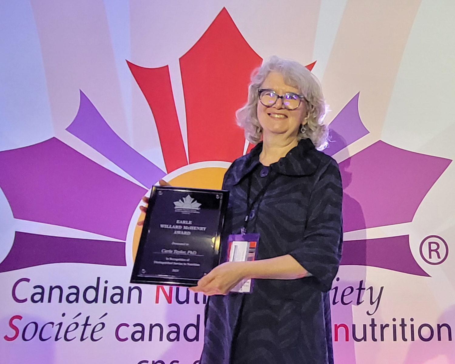 Dr. Carla Taylor was honoured with the Earle Willard McHenry Award for Distinguished Service in Nutrition, presented annually to a Canadian or Canada-based professional who has made significant and lasting contributions to the field. Dr. Taylor was recognized for her inspiring mentorship, academic leadership, pioneering research, and support for developing innovative nutrition programs.