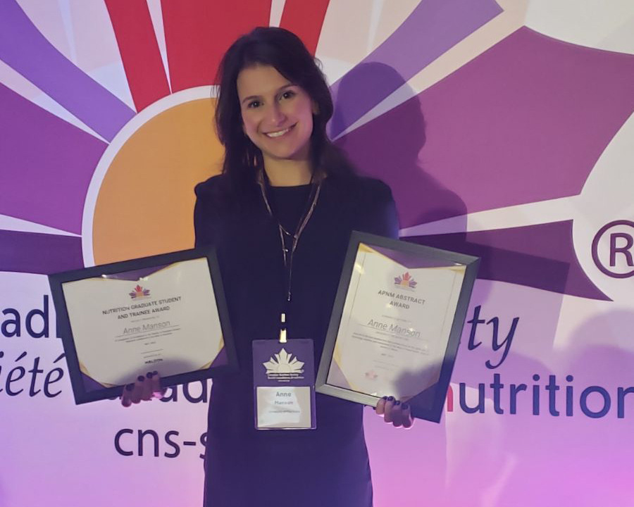 • The Nutrition Graduate Student and Trainee Award / Christine Gagnon Memorial Travel Award, presented to only eight students across Canada. This award included the opportunity to deliver an oral presentation in a dedicated session at the conference, highlighting her research to national experts and peers.