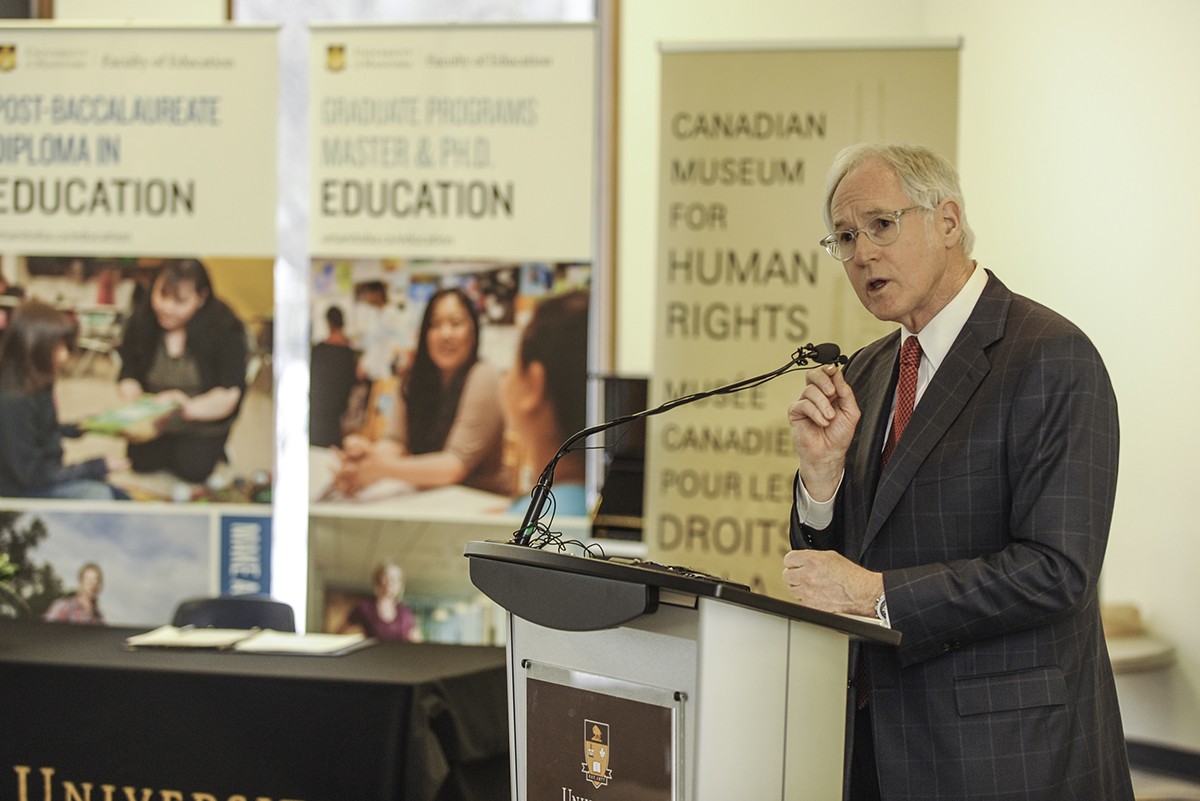 “The purpose of this summer institute is to ensure human rights take a central place in education – not just as something we teach about, but also as something that informs how we teach,” David Mandzuk, dean of Education, told a news conference at the Faculty of Education building on March 14.