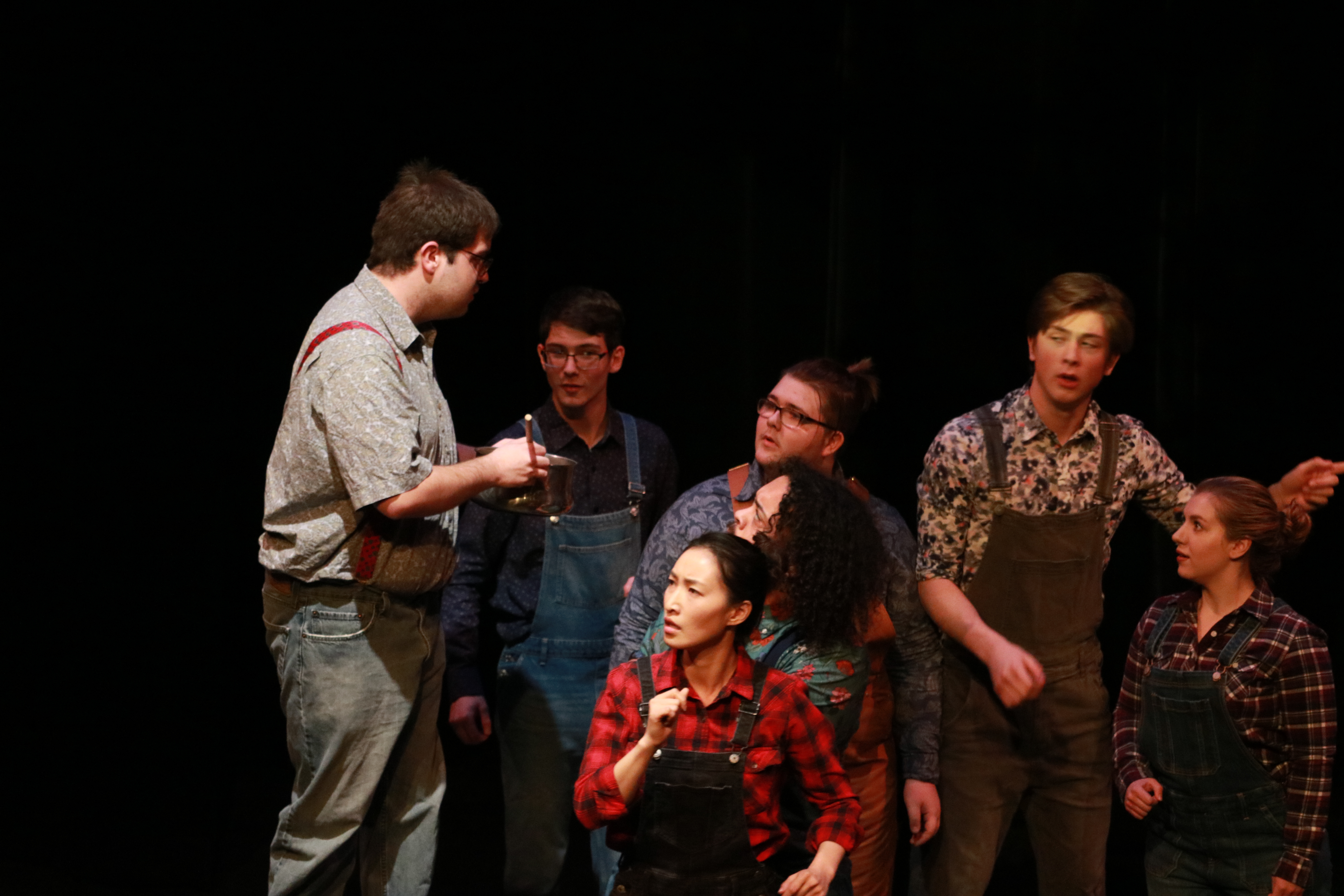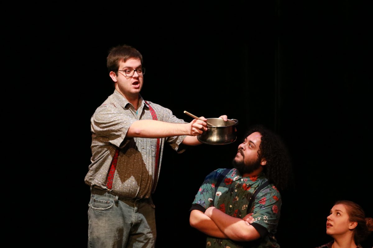 Stroud played Ben, a cook in Benjamin Britten’s opera Paul Bunyan, where lumberjacks in early America were forced to choose between Ben’s terrible cooking and the equally atrocious cooking of Sam (played by Ian Olson). Stroud’s authoritative, beautiful, and booming baritone voice desperately makes a case for the beans he is cooking, luring the lumberjacks with (questionable) prose about the superiority of his meals. Olson’s Sam duels with Ben, making a similarly disproven case for his cuisine.