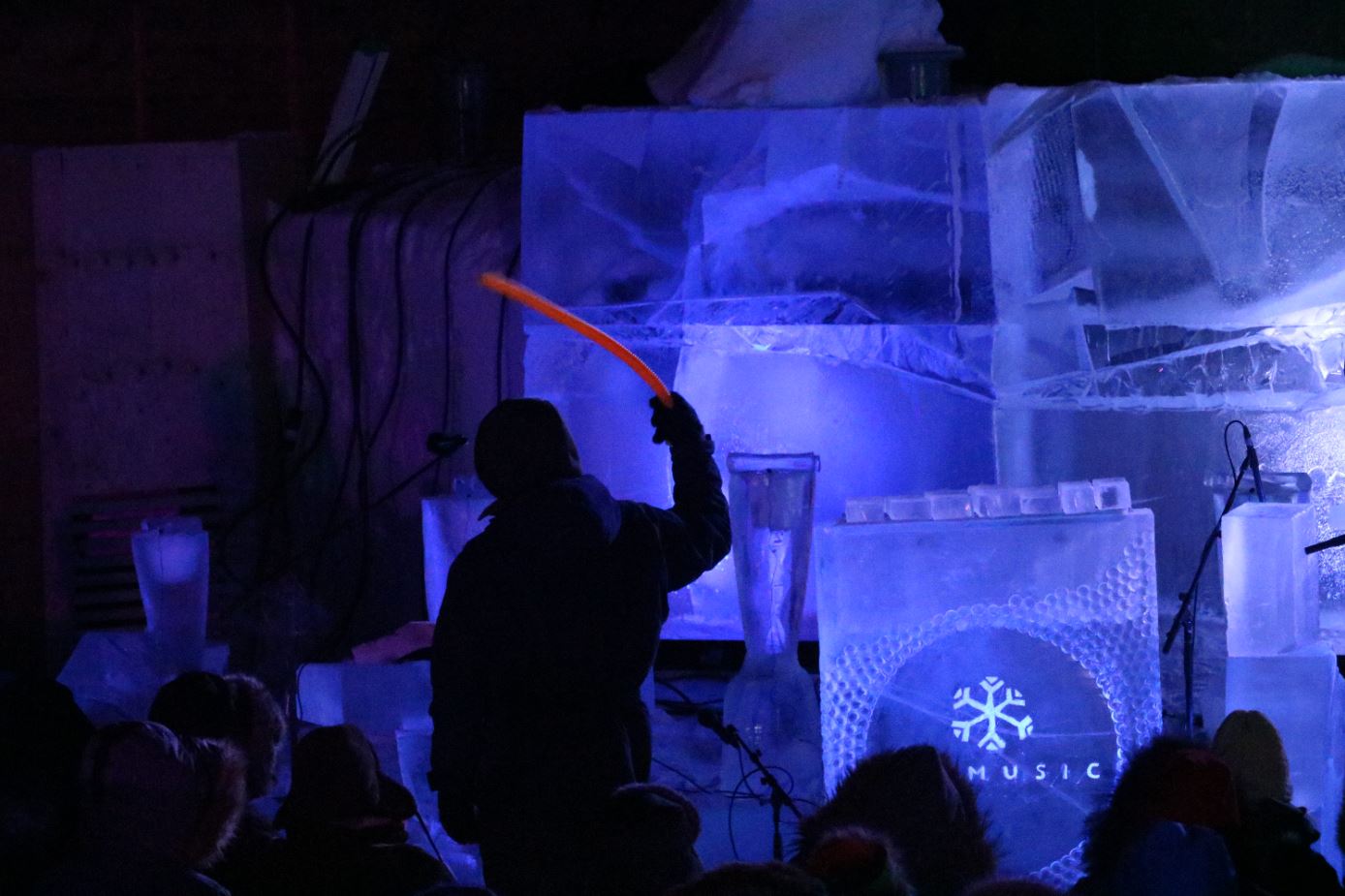 Audience admires illuminated ice instruments