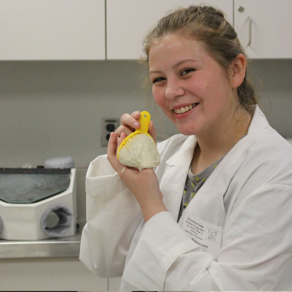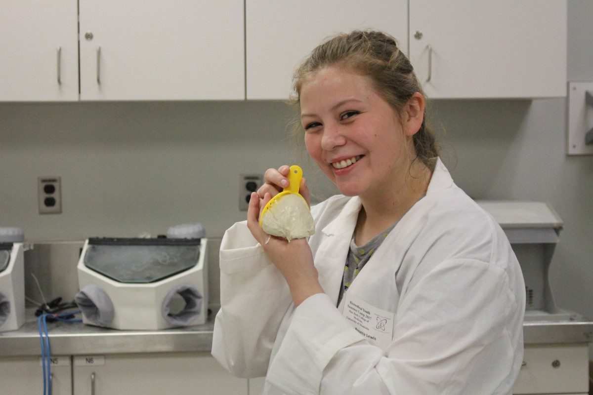 Lewis is one of 120 students who took part in the Rady Faculty of Health Sciences’ annual Biomedical Youth Program (BYP) Summer Camp. From July 17 – 21, 2017, students from Grades 5 to 12 descended on the University of Manitoba Bannatyne Campus to explored activities in the health sciences, from filling teeth and compounding sunscreen to learning how to intubate a manikin and perform an ultrasound.