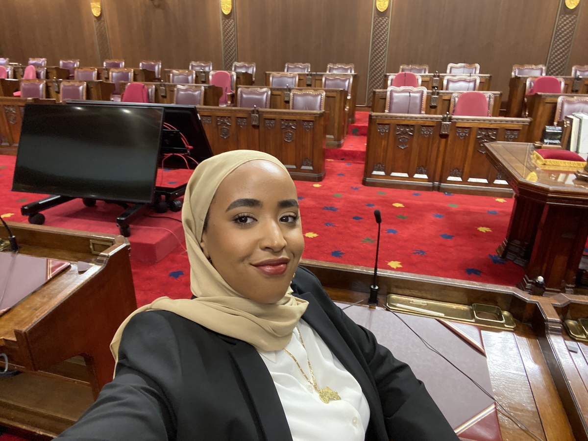 Reem Elmahi was in the House of Commons on October 3, 2023, the day Greg Fergus was elected as Canada’s first Black Speaker. The fifth-year Faculty of Science student witnessed the historic moment as part of a group of 20 Black youth selected for the 1834 Fellowship, a months-long learning opportunity that concludes with a trip to Ottawa.