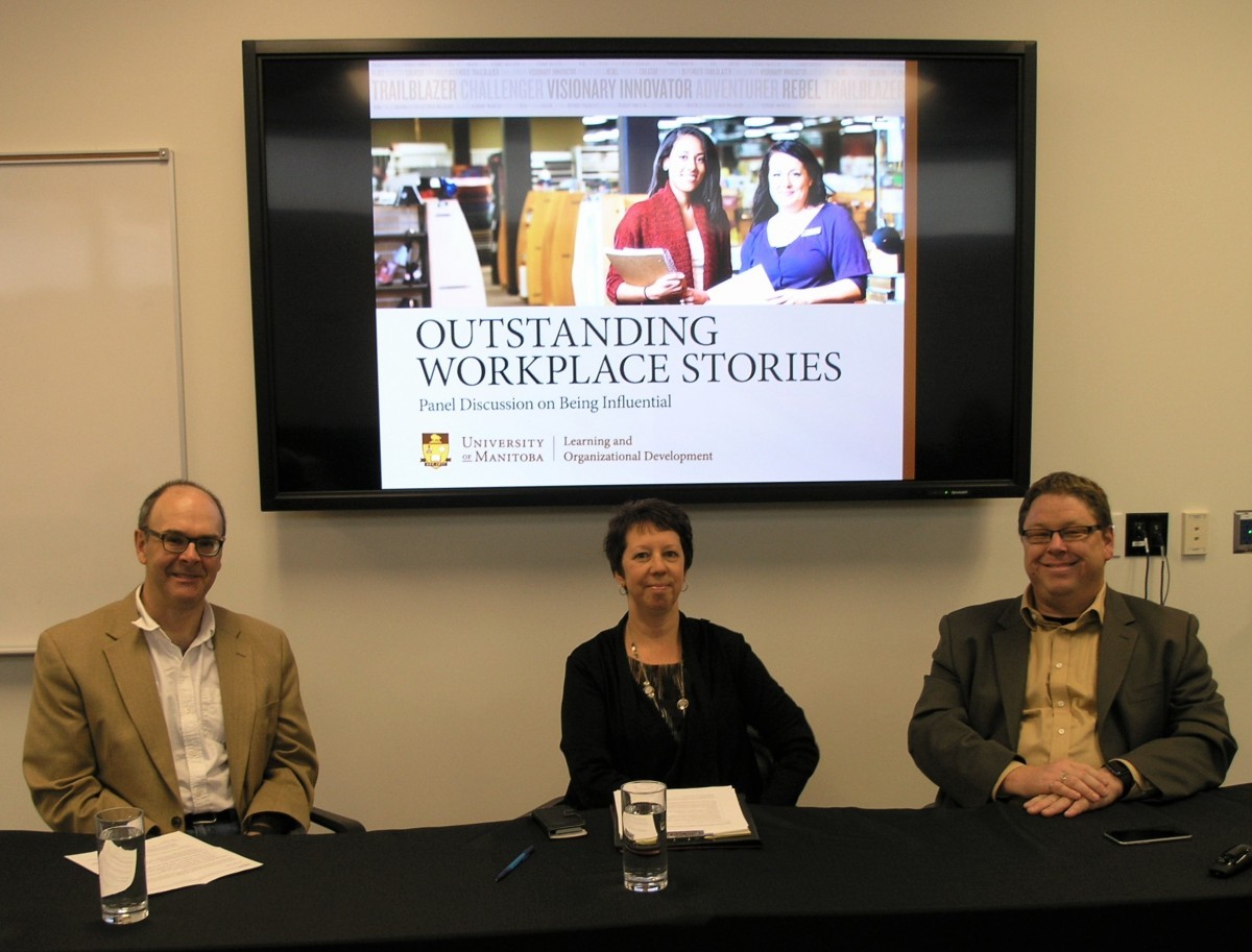The first event focused on using influence in the workplace. Speakers were: James Blatz, associate vice-president (partnerships) and professor in the Faculty of Engineering; Karen Meelker, access and privacy officer/coordinator; and David Ness, director of Student Counselling Centre and associate professor and counsellor.