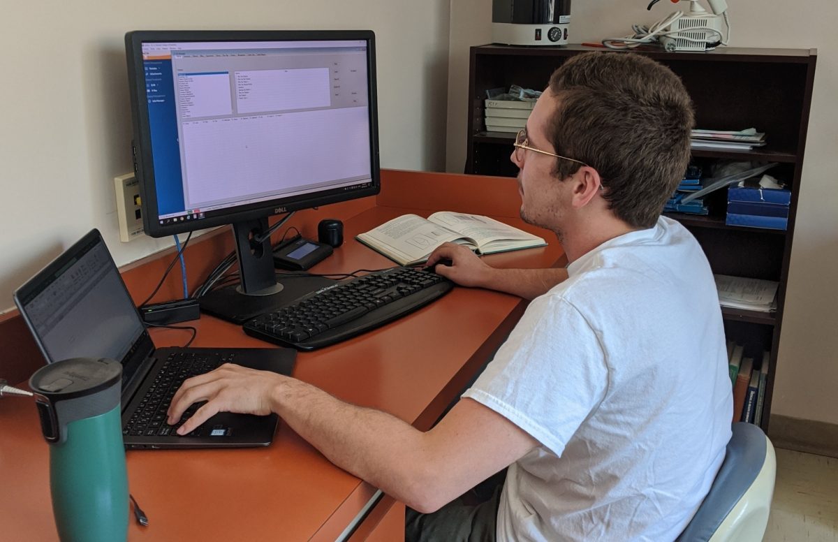 Stefan Mezibroski, who is entering his fourth year as a doctor of dental medicine student, works on his B.Sc. (Dent.) project from home.