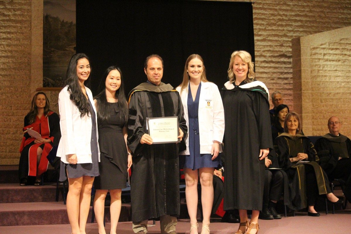 Members of the class of 2017 present Dr. Rob Ariano and Monica Wong the pharmacy team of the year award.