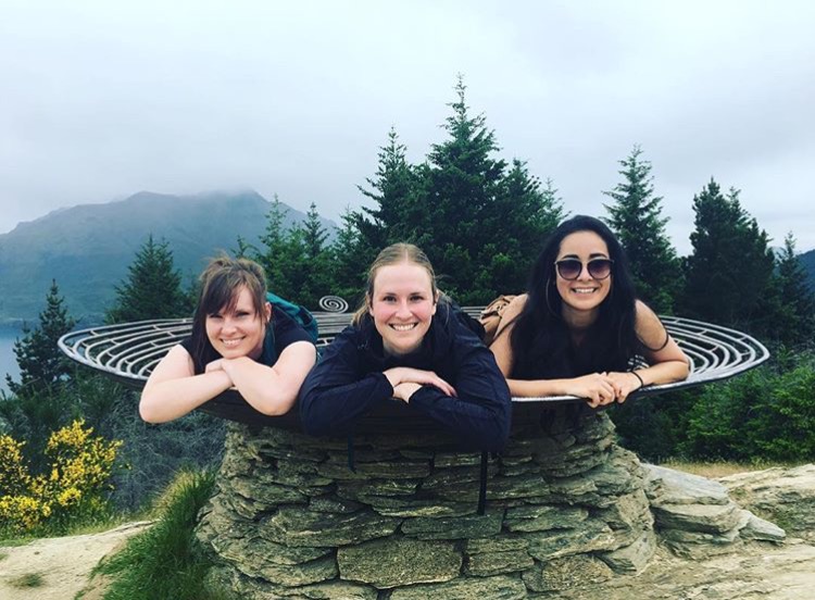 Fourth year Pharmacy students Taira Hill, Jennifer Richelle and Kirsten Chale in New Zealand
