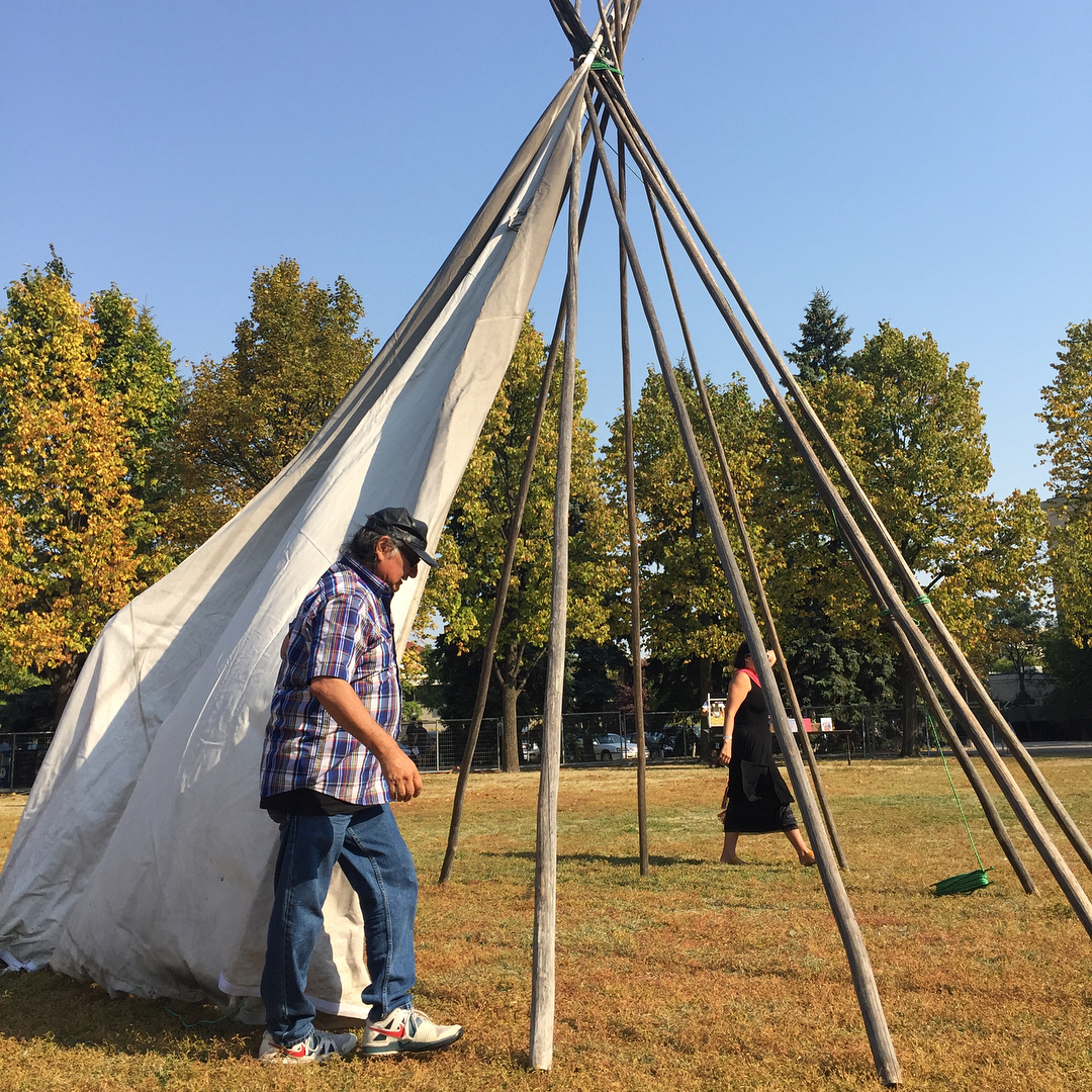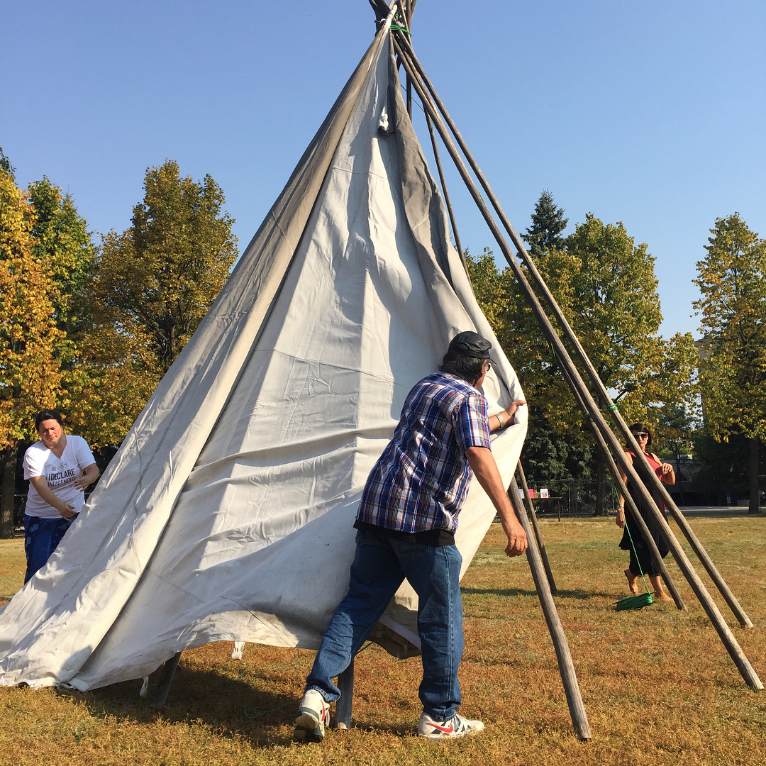 A beautiful day for a Tipi Raising in the Quad, part of Indigenous Orientation 2017.