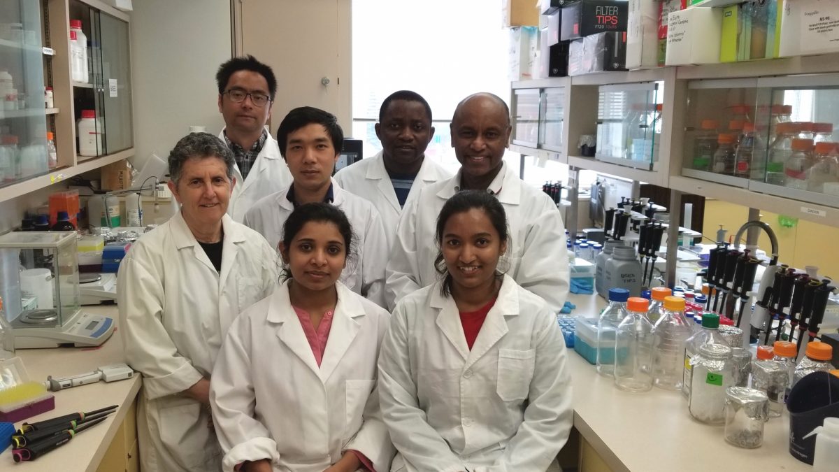 Dr. Fernando (back row, right) and members of his laboratory team.
