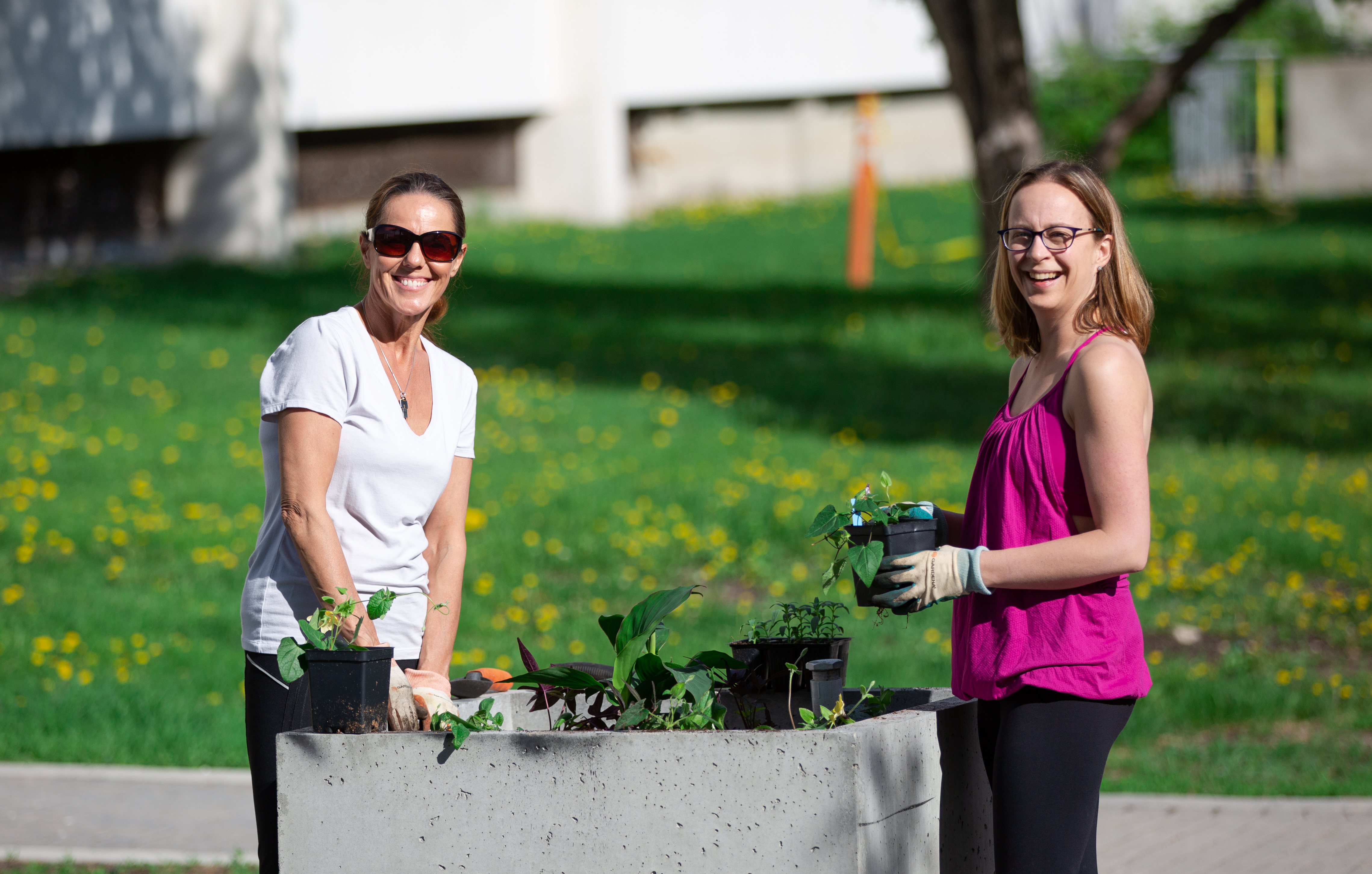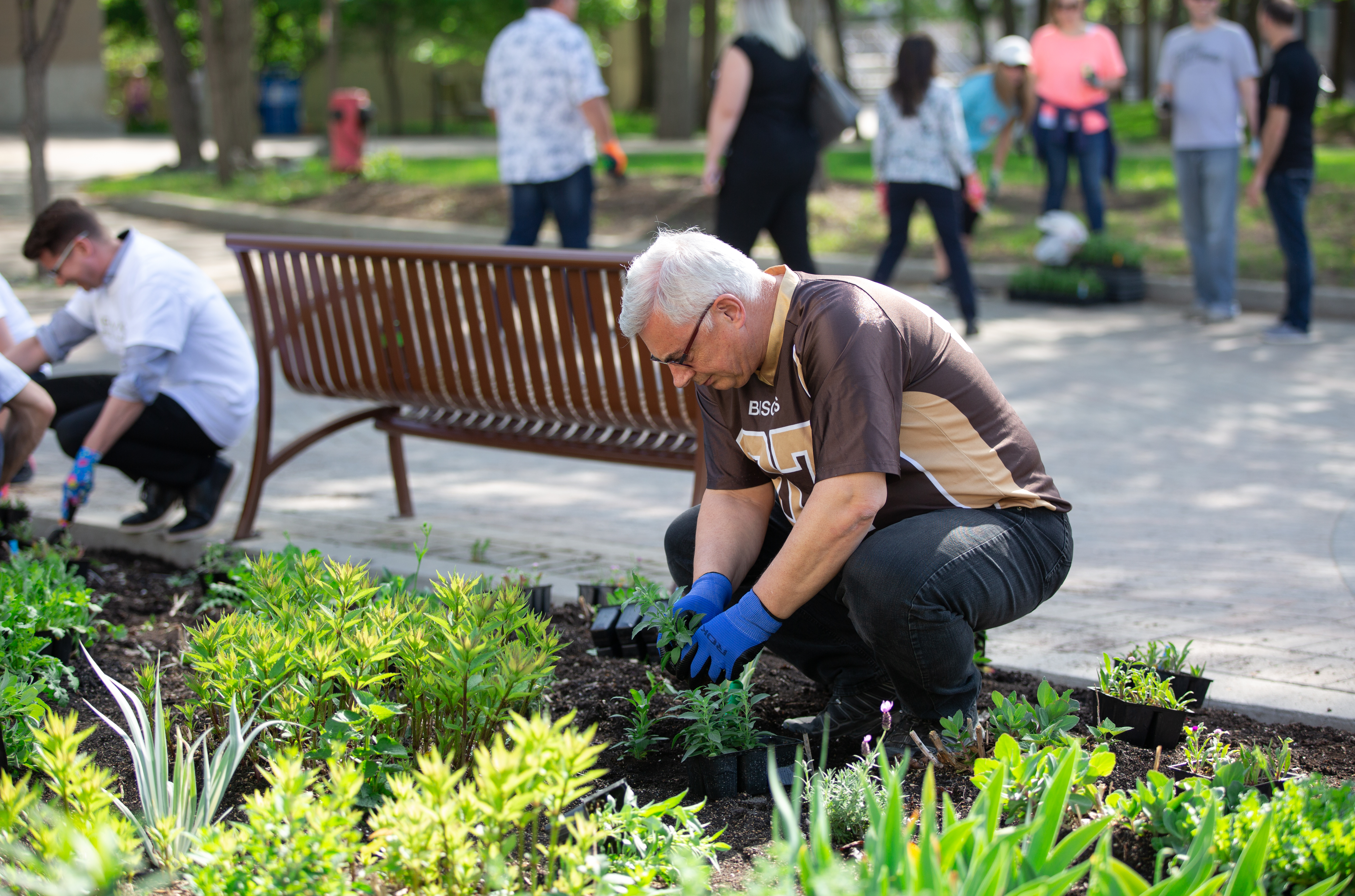 May 22 saw the Bannatyne campus enhance their space, followed by the Fort Garry campus on May 25 and Smartpark tenants on June 4. All three events concluded with barbecue lunches to which all staff, students and community members were invited, even if they didn’t participate in the planting, raking and weed-pulling.