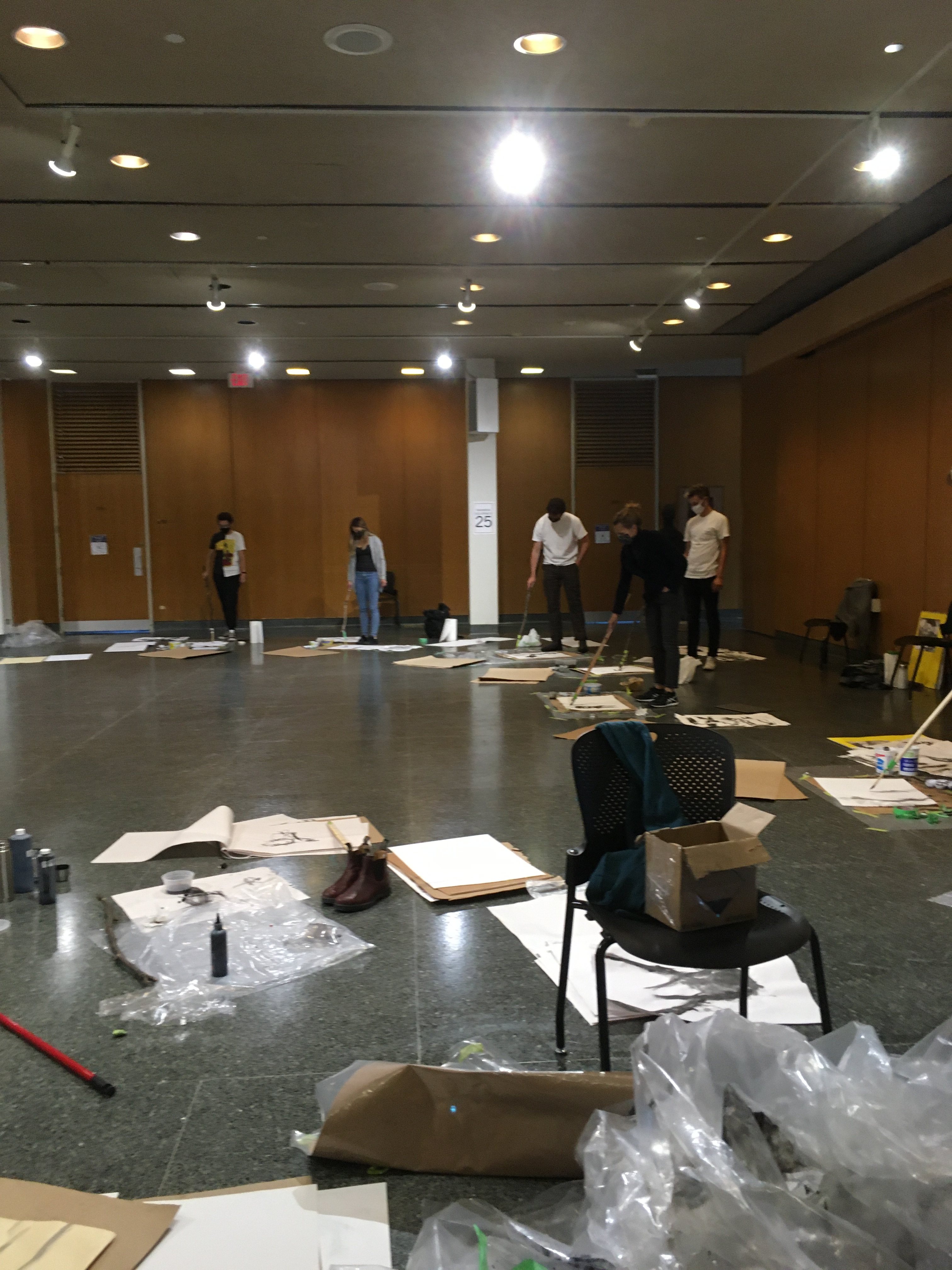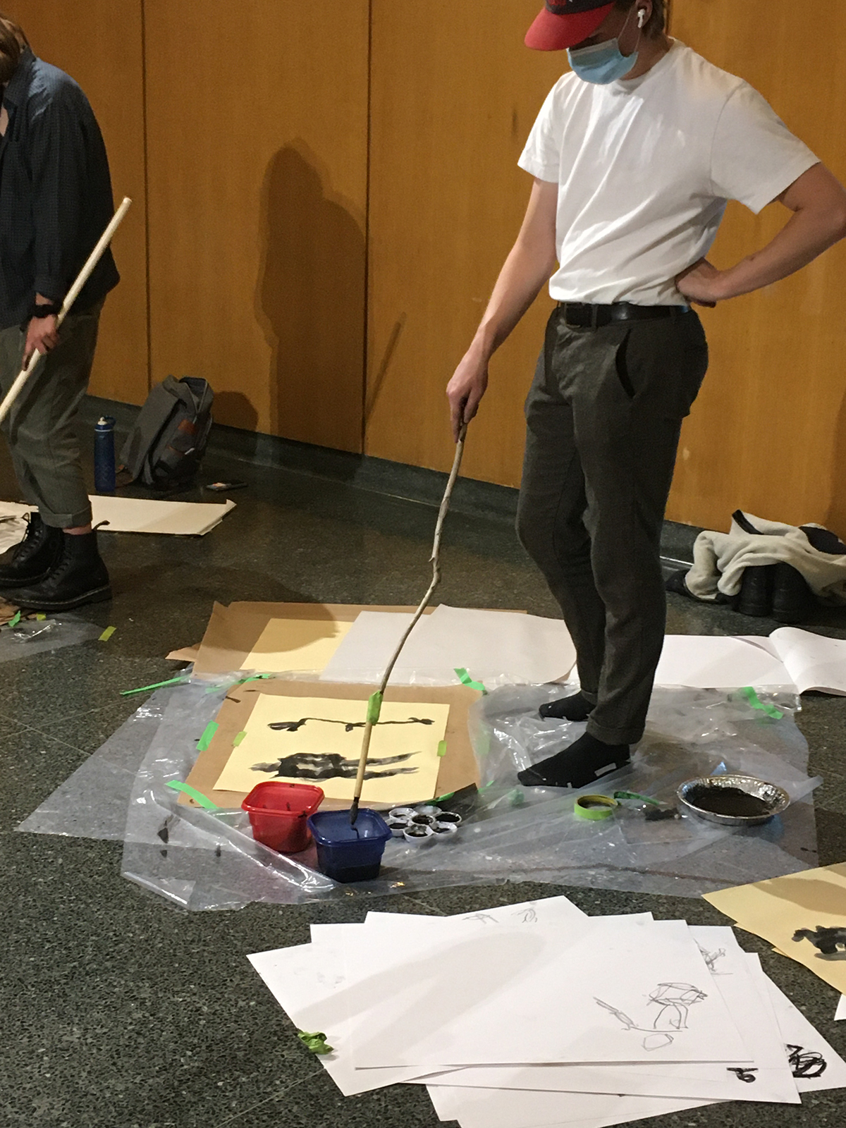 As a return to the school after a time of isolation and constraint, the attitude of the workshop was light, risky, and delightful. The students were asked to work fast and hard, to laugh frequently and push past their preconceptions of what drawing is about.  Among the many exercises the students tasted spices and created time-based drawings of those tastes, used smoke to develop luminous landscapes, and tennis balls dipped in paint as an experiment in cooperative and spontaneous mark making.