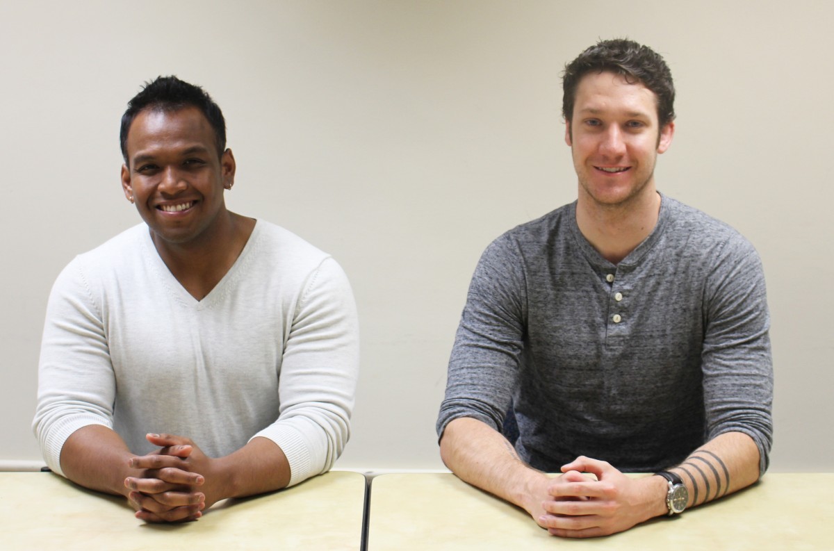 Masters of Physical Therapy students Sitha Soung (L) and Caleb Smith (R) participated in the Falls Prevention Clinic.