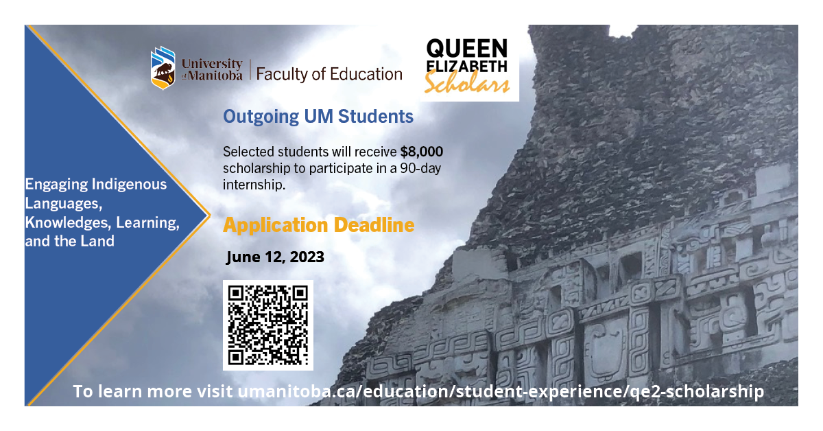 The Department of Curriculum, Teaching and Learning in the Faculty of Education will be accepting up to 16 QES scholars selected from senior undergraduate and graduate students enrolled in degree programs at the University of Manitoba.