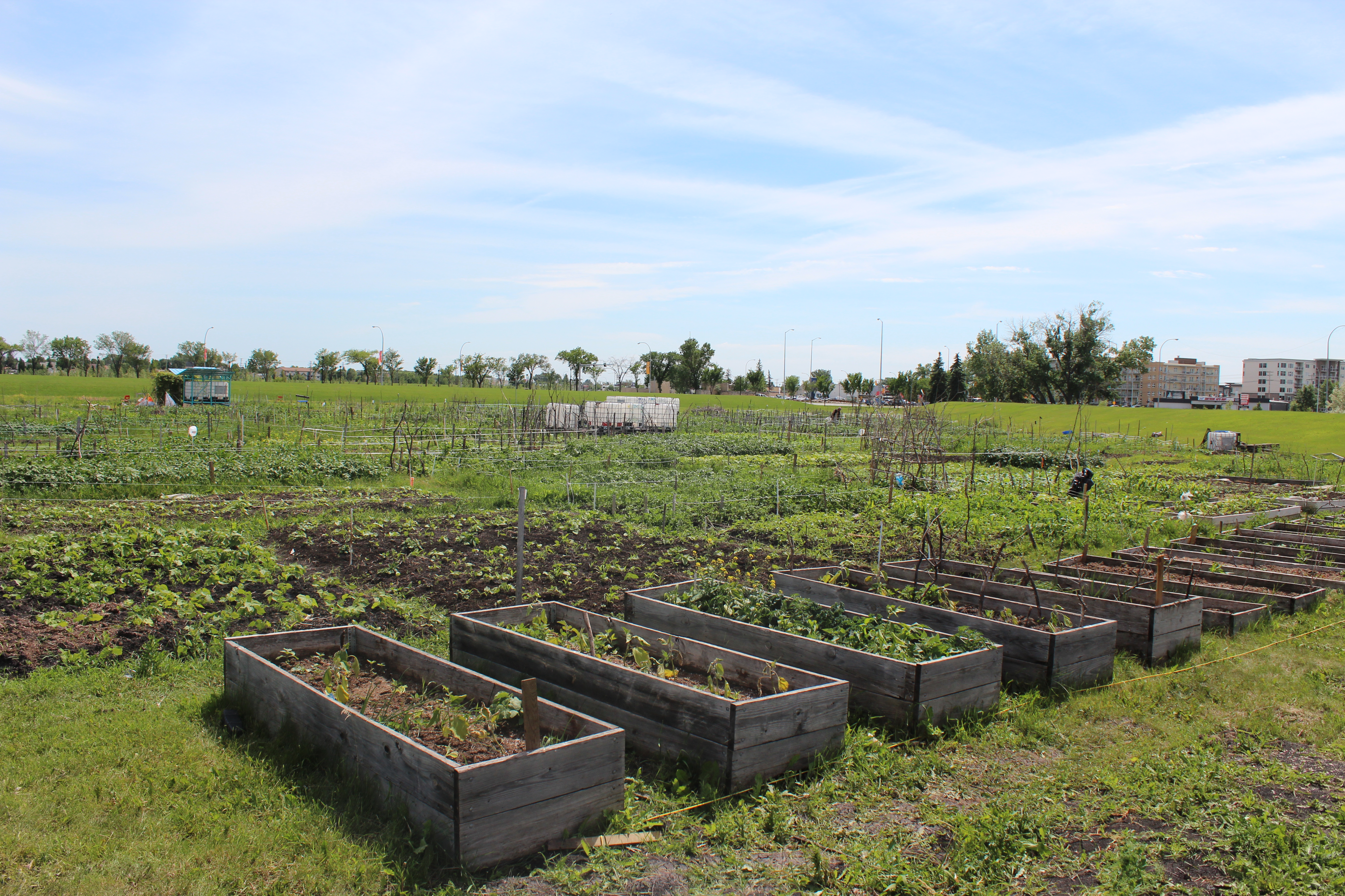 The Rainbow Gardens community garden on the University of Manitoba campus supports immigrant families from the Central Park area of the city. These gardens help community members to grow their own food, share in their native culinary traditions, and to establish a meaningful social network among other immigrant and local community members.