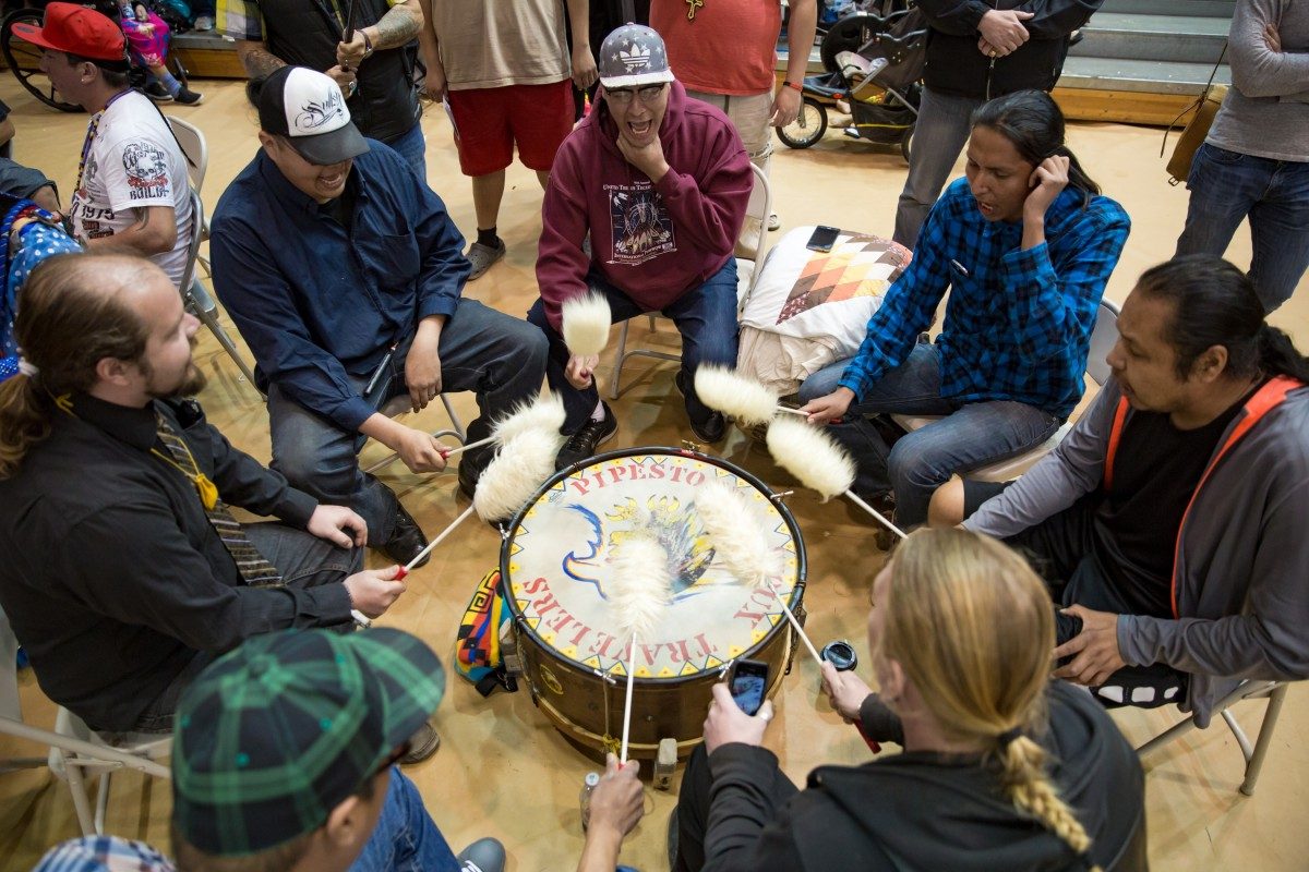 A Drum Group at the 2016 Traditional Graduation Pow Wow.