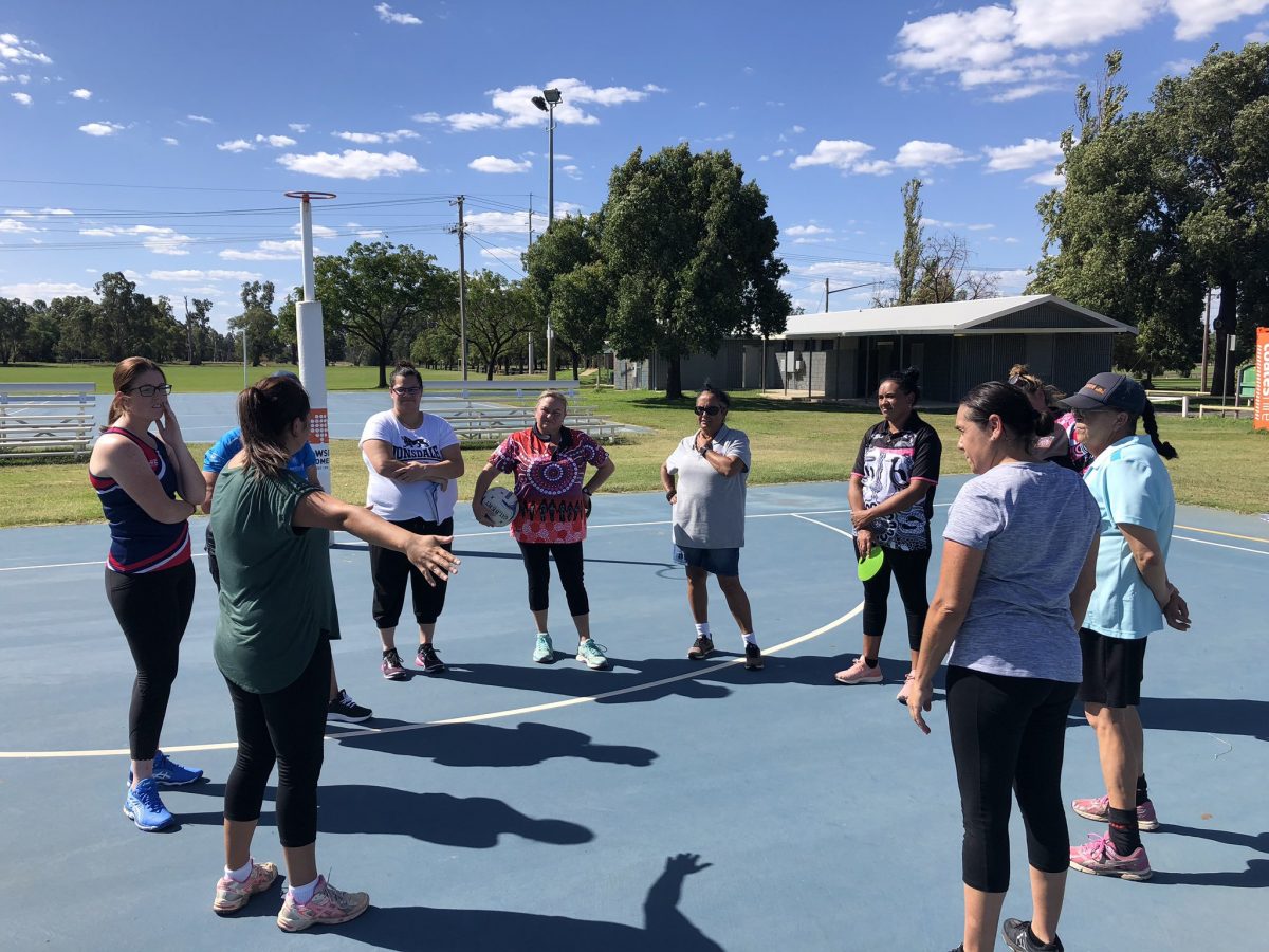 A glimpse at a Wiradjuri netball coaching workshop featuring community champions from Walgett, Narrabri, Cobar and Dubbo // Photo @AndrewBennie_17 via Twitter