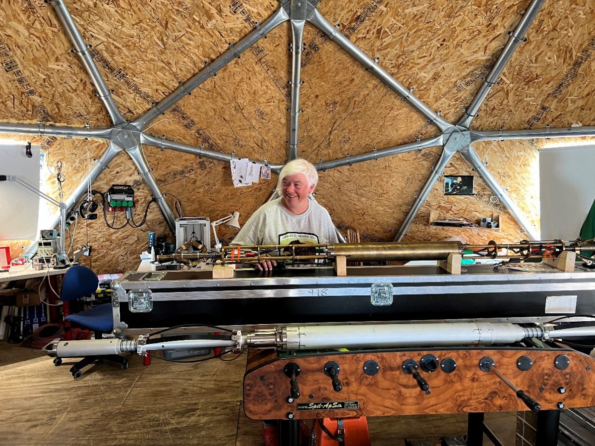 Dorthe in her lab in the Dome above ground working on her next-generation drilling system with sensors to report on events underground during drilling.