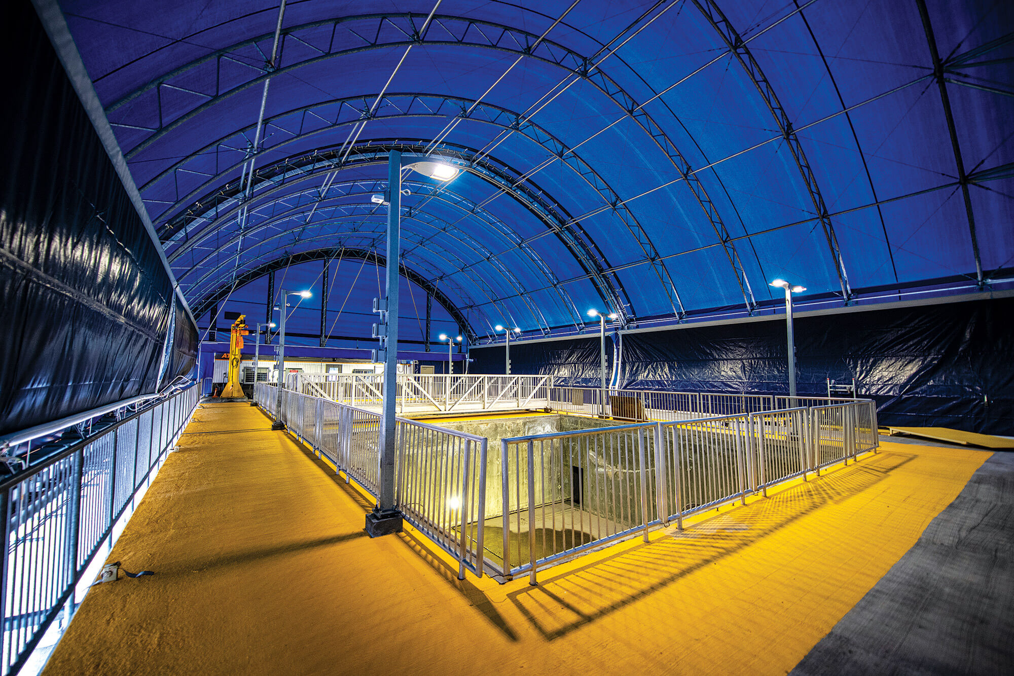 Pride of place in the $45 million facility are the twin outdoor pools of OSIM. Filled with freshwater or ocean water, the OSIM tanks allow for experiments where one pool serves as a control and one as an experimental pool to study how marine transportation-related contaminants such as oil spills interact with water and ice.