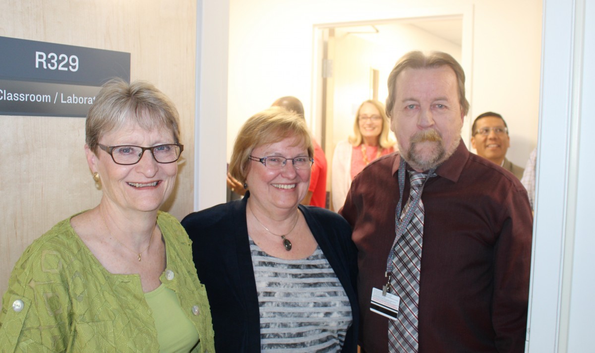 (L-R) Donna Collins, Acting Dean, College of Rehabilitation Sciences; Emily Etcheverry, former Dean of the College of Rehabilitation Sciences; and Ken Chambers, Instructor and Acting Department Head of Respiratory Therapy at the RT opening.