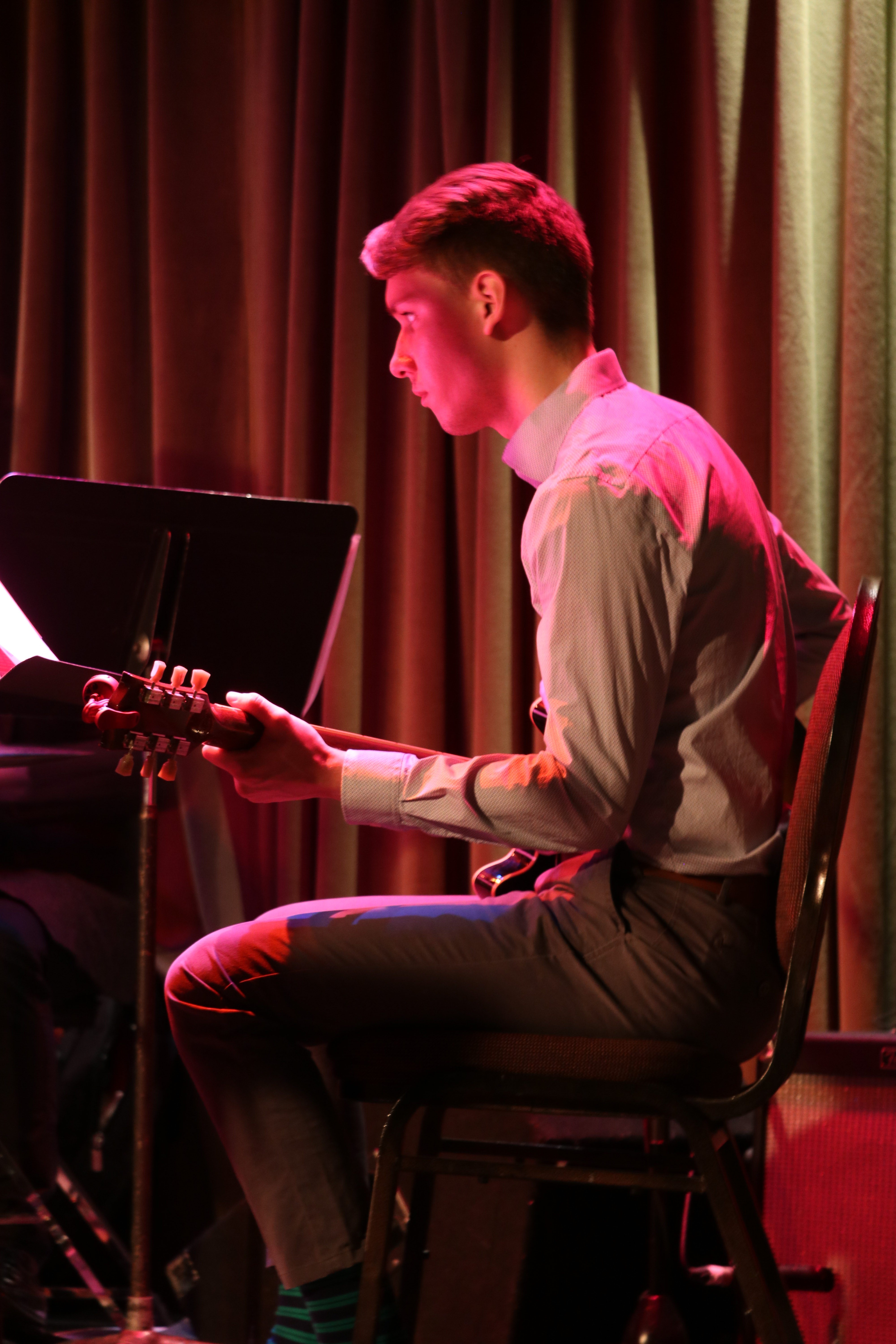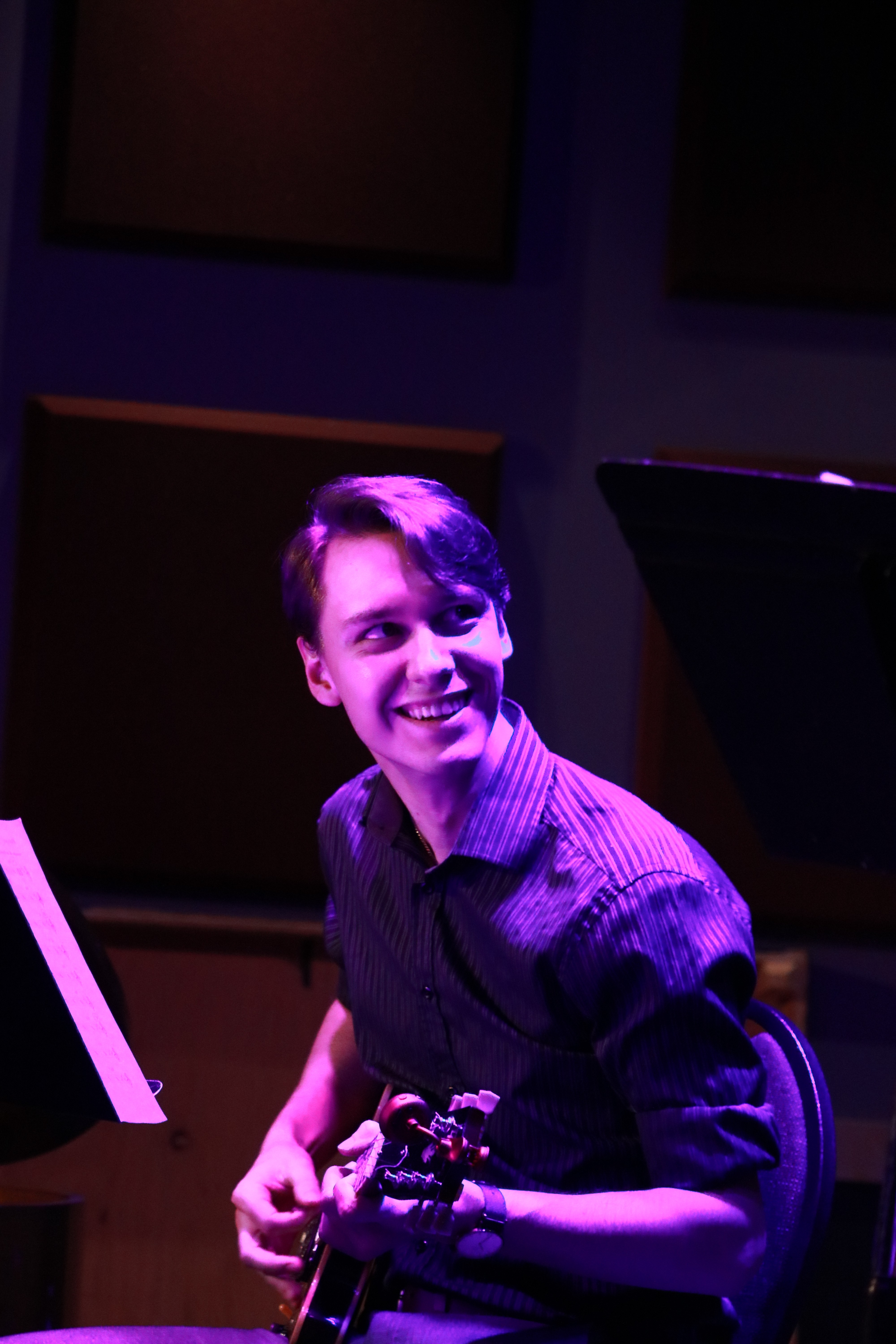 “For my graduation recital, my intention was to provide a thorough in-depth overview of the guitar’s role in the ensemble throughout the history of jazz. I went back to the roots of the Dixieland style with an arrangement of ‘Darktown Strutter’s Ball,’ which was one of first-recorded jazz standards,” he says.