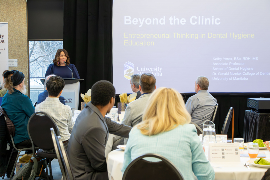 - Associate Professor Kathy Yerex, Dr. Gerald Niznick College of Dentistry, shared about a new module in the Dental Hygiene program to help students develop skills for professional innovation and small business.