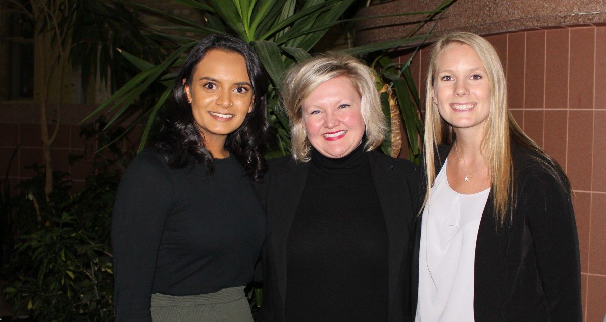 Keynote speaker Dr. Sheila Harms (centre) with co-organizers Amy Sahai (left) and Jaymie Walker (right).