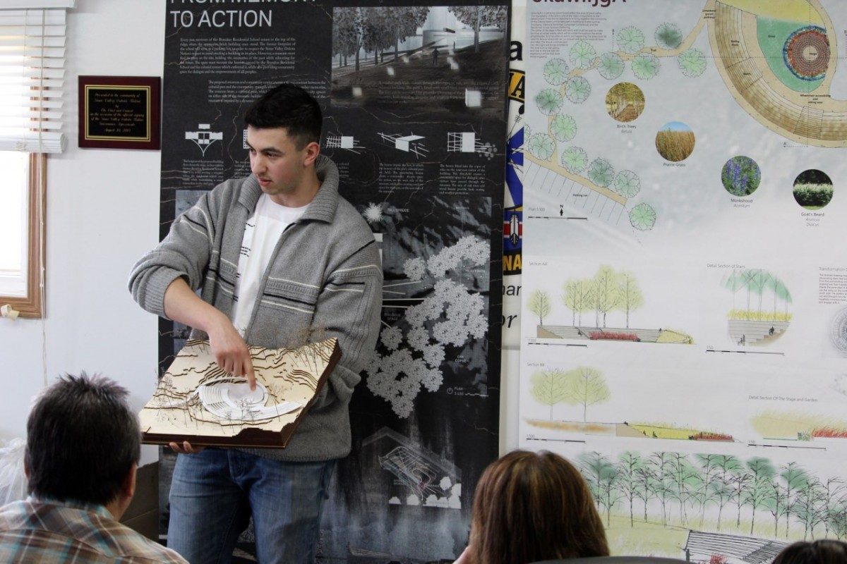 In August of 2016, Sioux valley held their 2nd annual Residential School Survivors Gathering at the former Brandon Residential School site, which Sioux Valley owns. A news article of that event perked the interest of Karen Wilson Baptist, an instructor at the University of Manitoba. Thinking this location and this project would be a perfect teaching opportunity for the universities Environmental Design Program, she contacted Della Mansoff, a member of our treatment centre committee. Della quickly brought this to the group which was interested in this opportunity. A quick meeting was held with Karen Wilson Baptist and her Teaching Assistant Brydget Lewicki. It was proposed that the UofM students in the Landscape and Urbanism Option use our project as their main study for the 2017 winter term. They would visit the Brandon Residential School site, do some required reading and learn some history to create their own concept of what the treatment centre could look like, as well as how to best to use the land in a respectful manner.