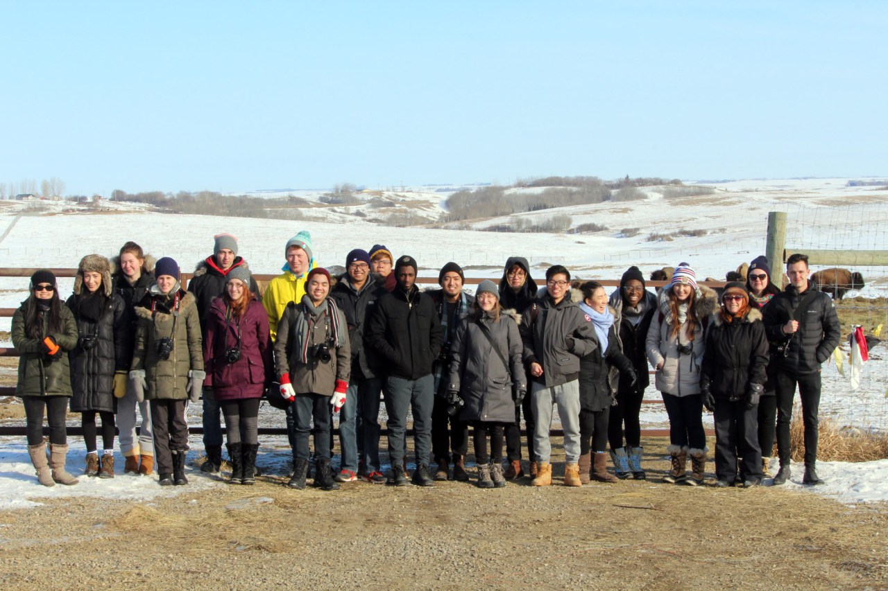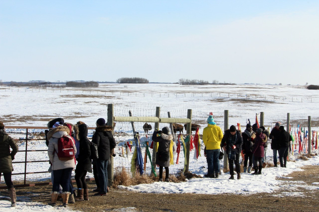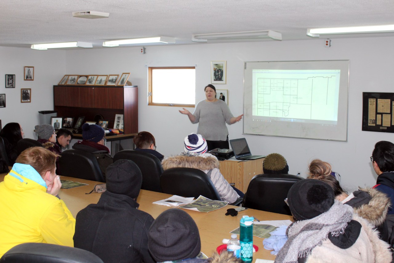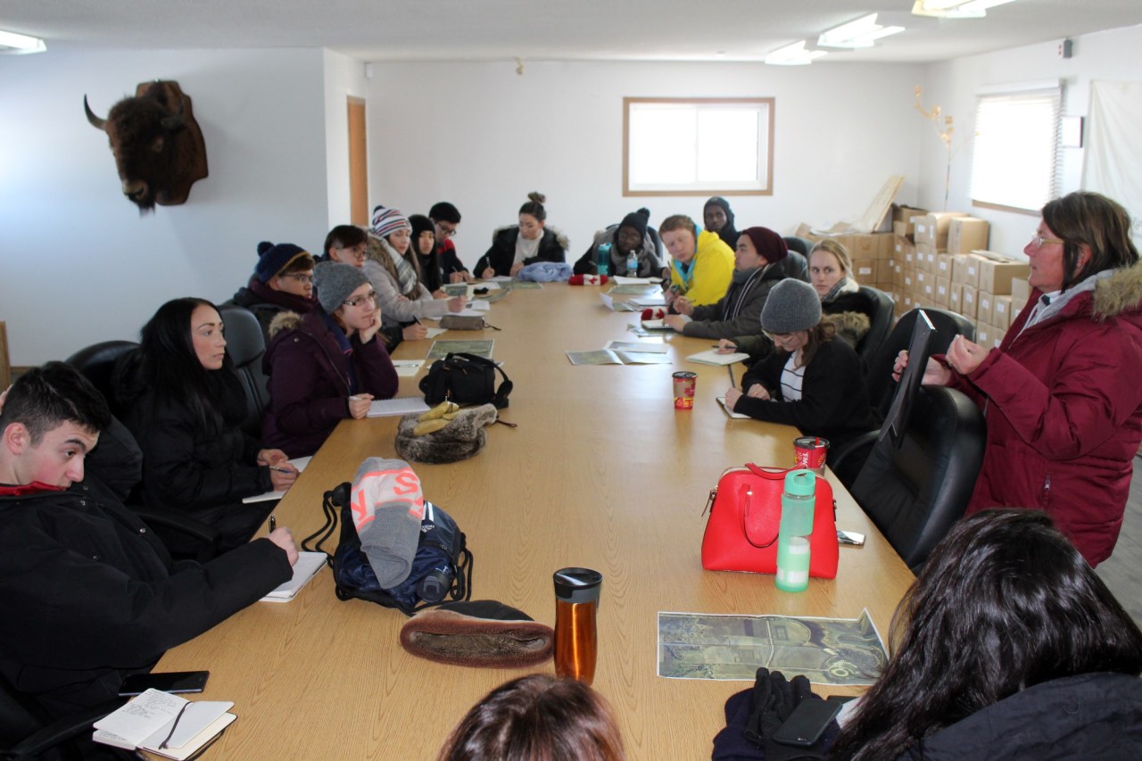 A tour of the site was arranged for March 2, 2017. Students arrived on site with cameras in hand, bursting with ideas and questions. They were met by Marge Roscelli, Della Mansoff, Toni Pashe, Elder Leona Noel and Councillor Elton Taylor. They were given unrestricted access to the site, as well as the residential school cemetery to the north. A truly eye opening experience for some of the students. After the tour of the site, the students, Instructor Karen Wilson Baptist and Teaching Assistant Brydget Lewicki visited Sioux Valley to get a feel of our community and culture. Any current and relevant plans for the treatment centre were shared with our visitors. After the presentation, they had a better understanding of the full scope of the project. The day was finished with a visit to the buffalo compound, where they saw our two white buffalos and received some parting words from Kevin Tacan.