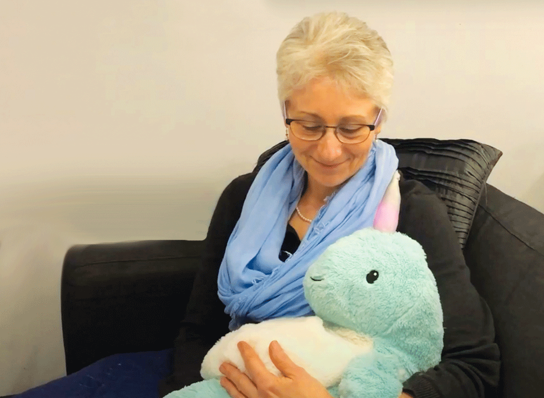 Danika saw a need to help people feel better, especially those in isolation during the pandemic. Her research indicated that caring for something (like a pet) often improves an individual’s wellness and motivation. The person has to take care of it, by keeping the microwaveable compress (in its pouch) warm, helping to create a connection.