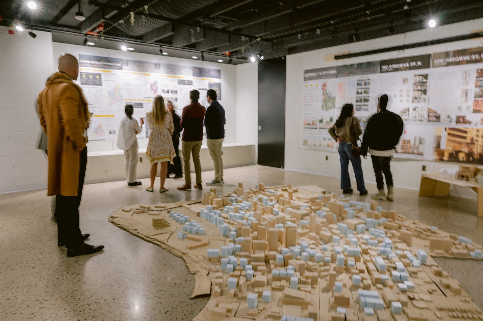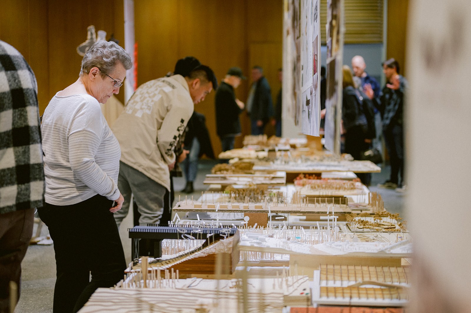 People view student work at the Faculty of Architecture's Year End Exhibition in 2023.