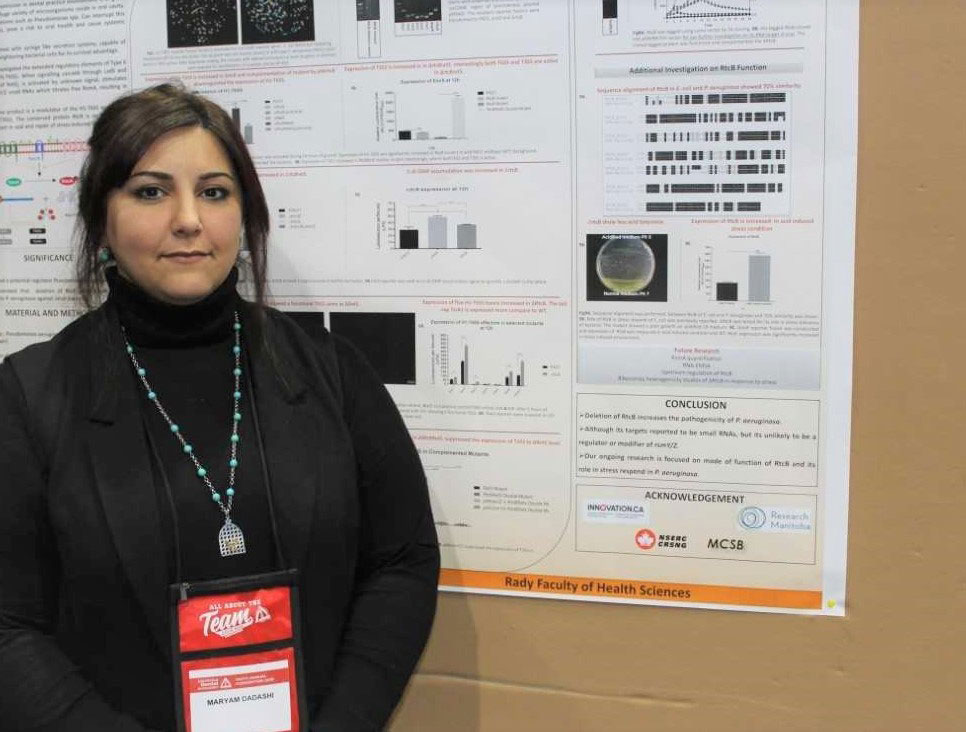 - Maryam Dadashi, a PhD student in oral biology, studied a gene that influences the virulence of a bacterium that causes infection in people with compromised immune systems or cystic fibrosis.