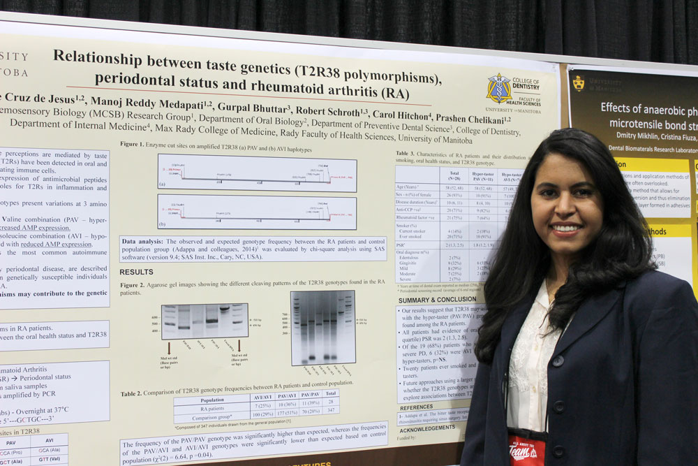 - Vivianne Cruz, a master’s student in oral biology, studied the DNA of patients with rheumatoid arthritis. She found that a genotype that makes certain people react strongly to bitter-tasting foods may be associated with this form of arthritis.