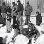 Teams of architecture students are braving the cold to play against each other in a friendly game of Ditchball outside of the Architecture 2 building.