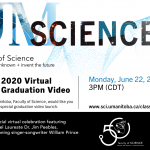 Join the Faculty of Science on Monday, June 22, 2020 at 3 PM and celebrate the Class of 2020! 2020 Graduation Video Celebration Monday, June 22, 2020, at 3PM (CDT) (featuring notable alumni: Dr. Jim Peebles, 2019 Nobel Prize in Physics & JUNO Award winning singer-songwriter William Prince + more).