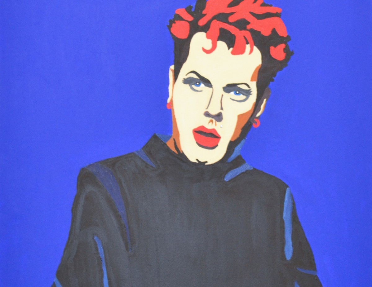 Detail of "RED" Cross dresser by Vivian M. Muska, acrylic on canvas, 3.4x4 feet.