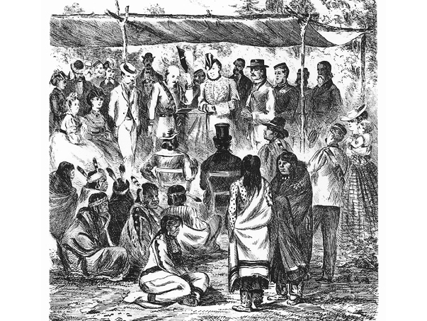 Conference with First Nations Chiefs during Manitoba-First Nations Treaty, 1871. // Glenbow Archives NA-1406-72