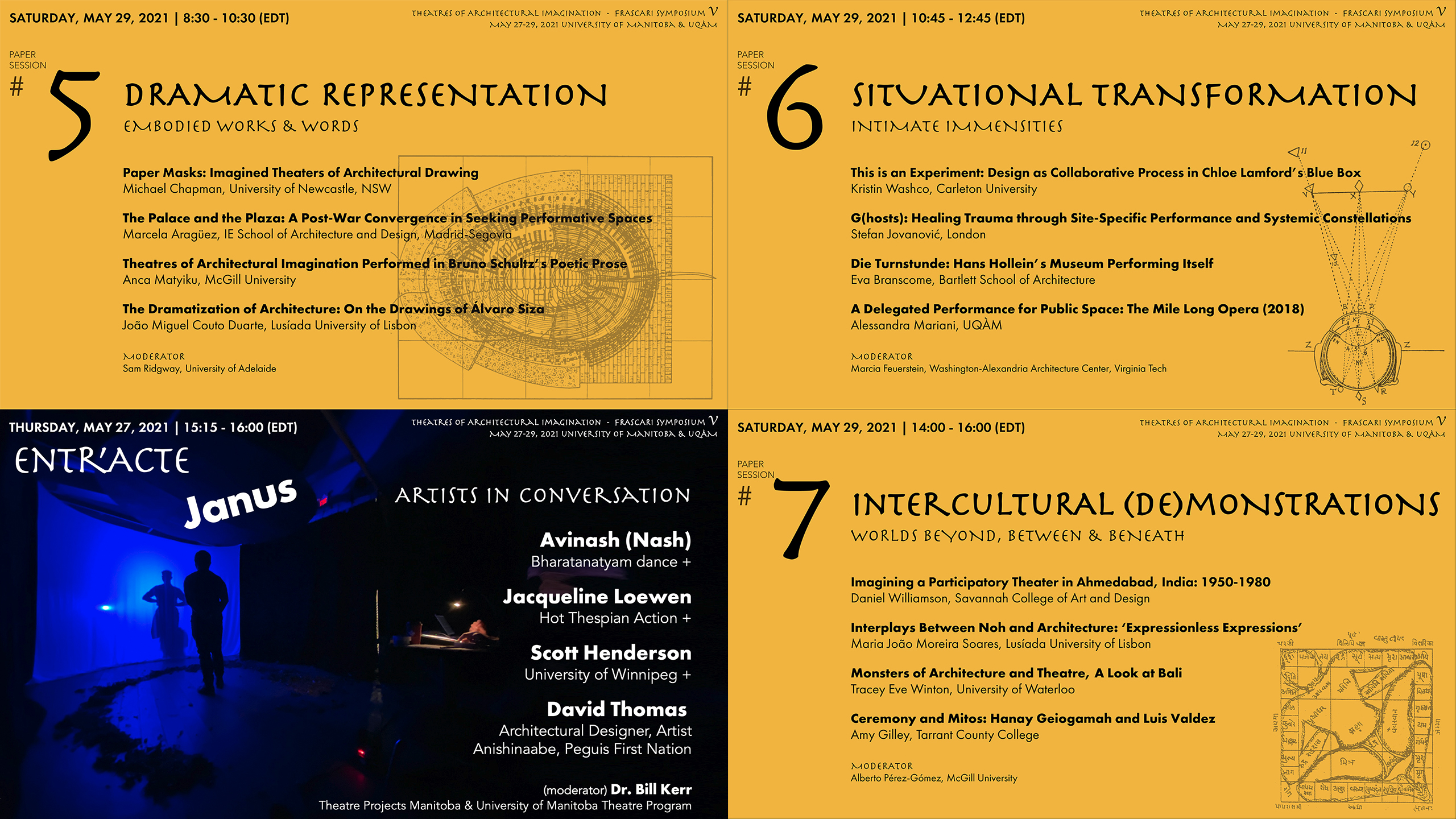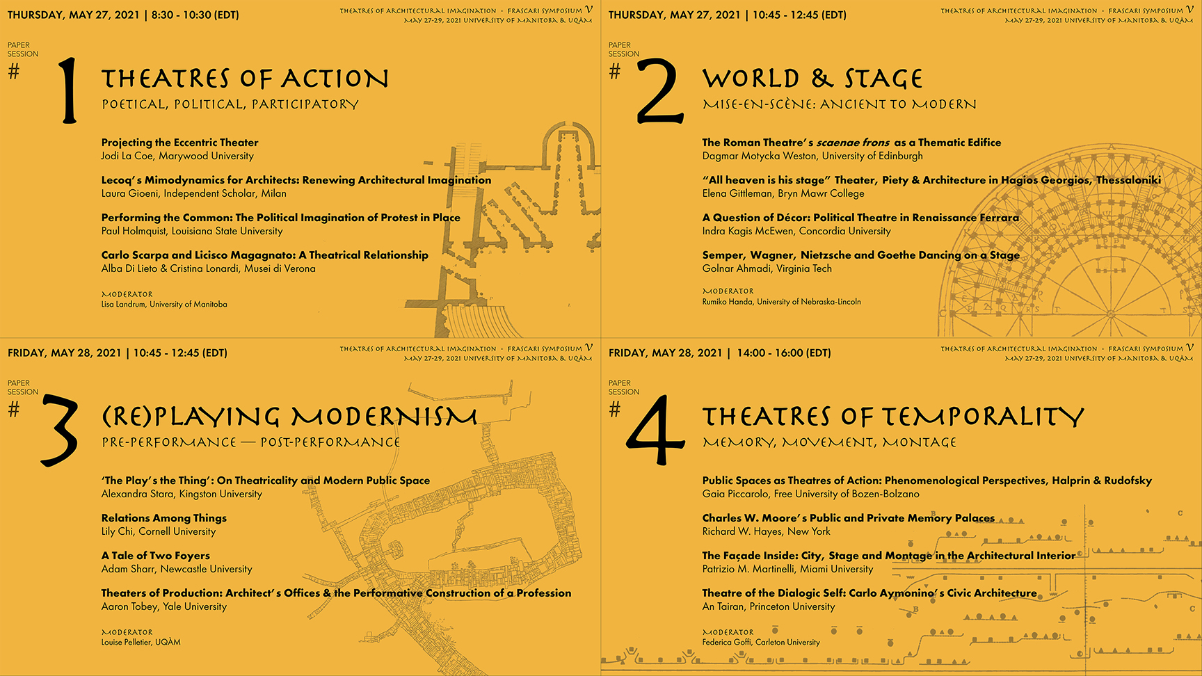 The Theatres of Architectural Imagination symposium was co-chaired by Lisa Landrum, University of Manitoba and Sam Ridgway, University of Adelaide, in collaboration with Louise Pelletier, UQÀM, and Alberto Pérez-Gómez, McGill University.