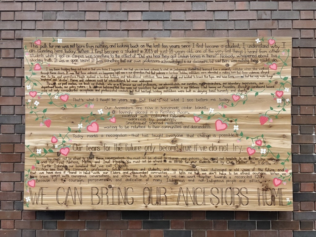 On June 3, 2024, the University of Manitoba apologized publicly for its history related to the inappropriate acquisition and housing of Indigenous Ancestral remains, burial belongings and cultural heritage without consent.