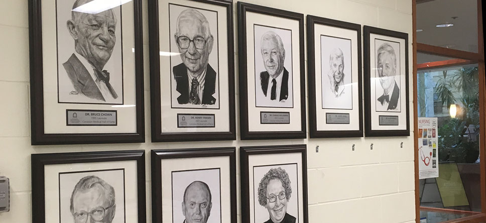 Just in time for Homecoming 2018, Rady Faculty of Health Sciences has created a portrait wall in Brodie Atrium, honouring the women and men who have received the prestigious distinction of Canadian Medical Hall of Fame (CMHF) laureate.
