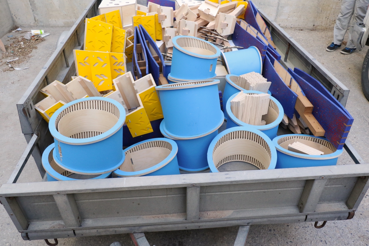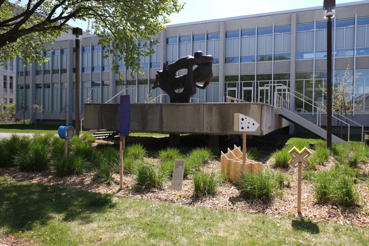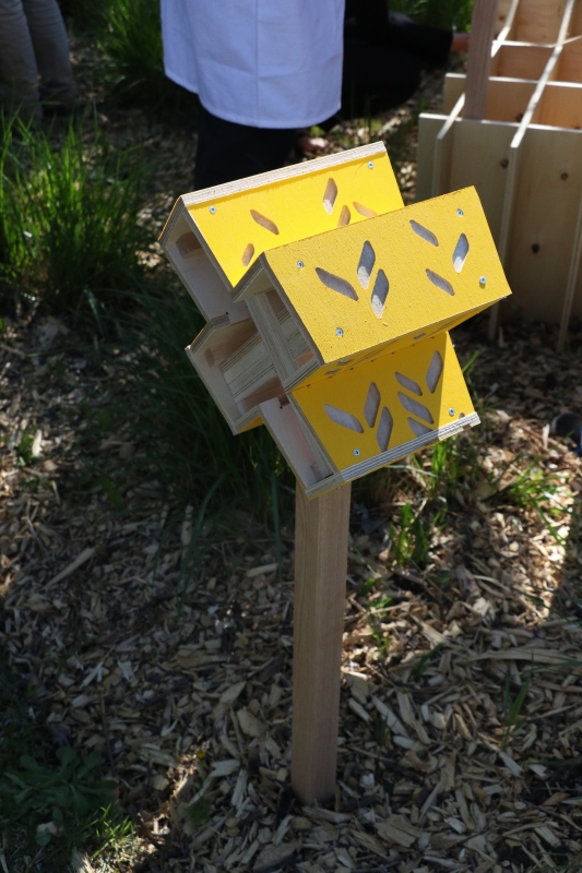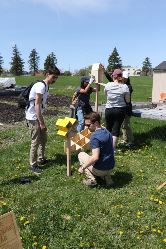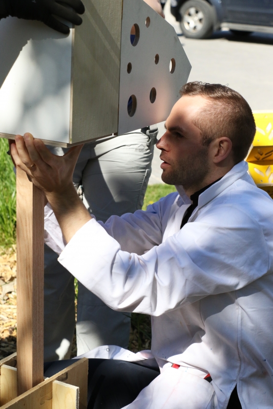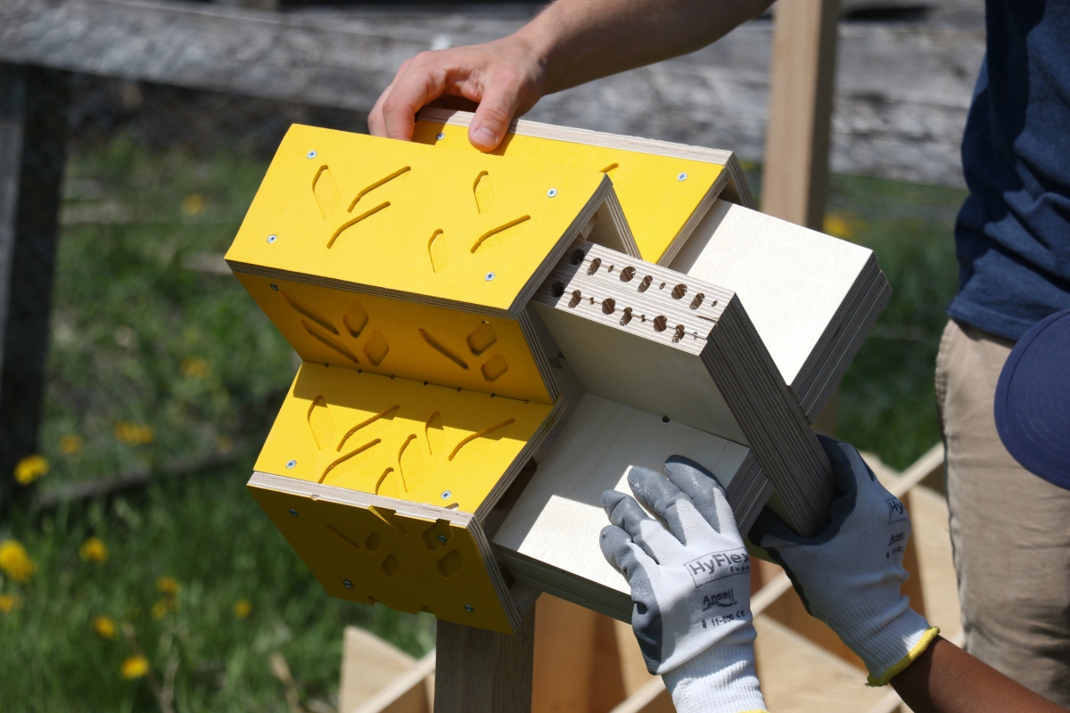 After the BEE / HOUSE LAB winners were announced in April, the U of M’s FabLab made the winning designs a reality and about 50 bee houses were installed by the University of Manitoba Parks Canada Campus Club. Until the end of October the bee houses can be seen on campus and in community locations including Le Marché St. Norbert Farmers’ Market and the Assiniboine Park Zoo.
