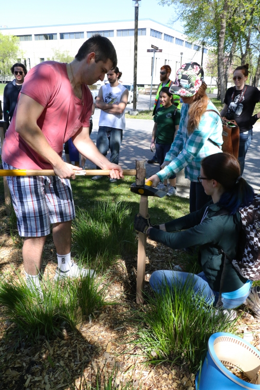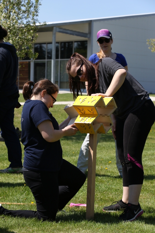 The outdoor enthusiasts at the U of M Parks Canada Campus Club will come together again at the end of October, to collect the bee houses, so that Robert Currie and the department of entomology can embark on the research aspect of BEE / HOUSE LAB by opening the bee houses to see how many of them were at the maximum capacity of around 80 – 100 solitary nesting bees per house. The jury decided which of the bee houses were winners of the design competition, but once the houses are opened it will become clear which design the bees preferred.