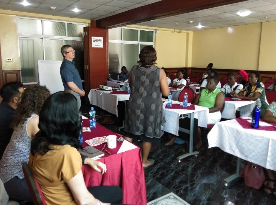 Dr. Keith Fowke, head, medical microbiology and infectious diseases, Max Rady College of Medicine, Rady Faculty of Health Sciences, and Rosemary Kasiba, a peer educator, speak at a knowledge exchange event in Nairobi, Kenya.