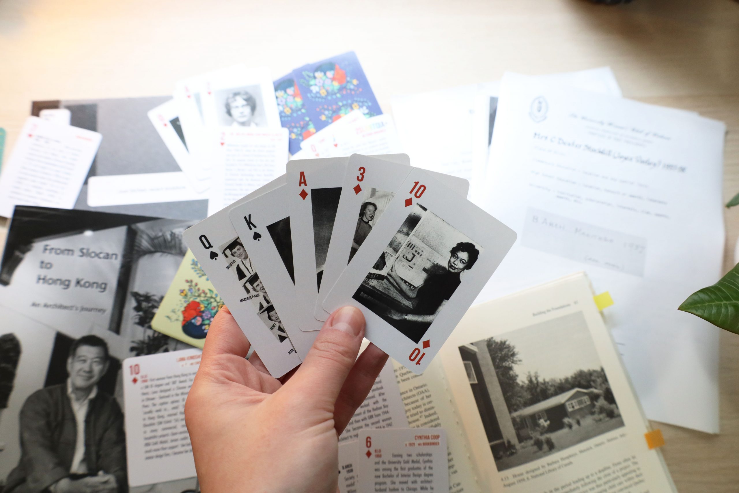 This summer, I have been working on a project that focuses on integrating women architects and feminine perspectives into the history of architecture. “Unstacking the Deck: A Game of Change” addresses equity and diversity in architecture through an interactive and creative approach, providing a double deck of playing cards. The playing cards reference a female genealogy of architects and promote a healthy share of social engagement and fun as well as careful study. The project celebrates early architects, graduates, and faculty members, and promotes public engagement, architectural research, and creativity. My work this summer consisted of archival research by reviewing historical books, yearbooks, journal articles and magazines, oral histories, and newspapers. I assisted with the final stages of card designs as well as organizing the exhibits of the decks and research material. The project aims to initiate the conversation within the community and make women architects and their contributions visible.