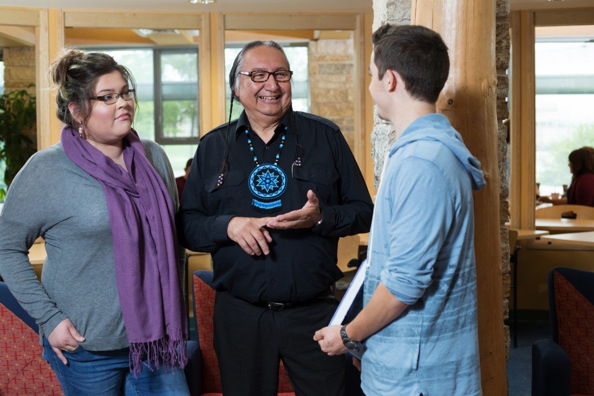 Carl Stone (Centre) Welcomes students to Migizii Agamik - Bald Eagle Lodge.
